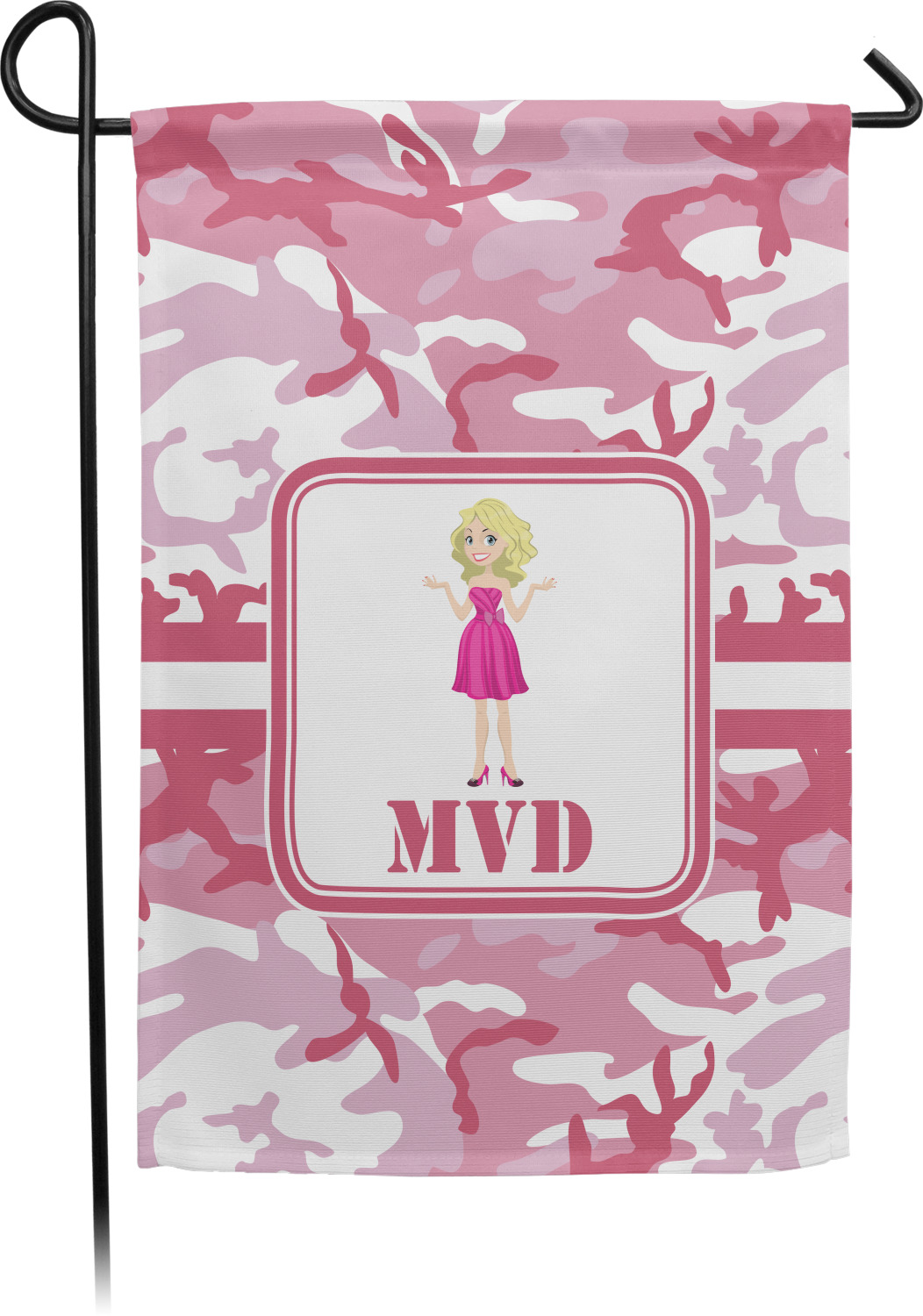 These custom garden flags are made of a durable, double-ply, polyester weave, allowing them to withstand the elements year round. The small flags measure at approximately 12 by 18 inches. The large flags measure out to 28 by 37 inches. You can order these decorative flags with your customization printed on the front only, or the front and back.