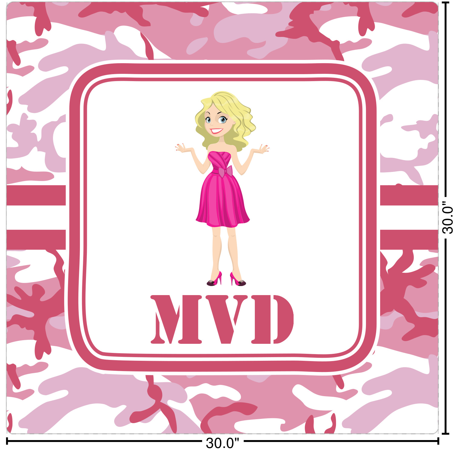 We have featured our little army girl, wearing her pink camo helmet, in the middle of the design in a pink and white square. A wide white band trimmed in pink tie everything together.