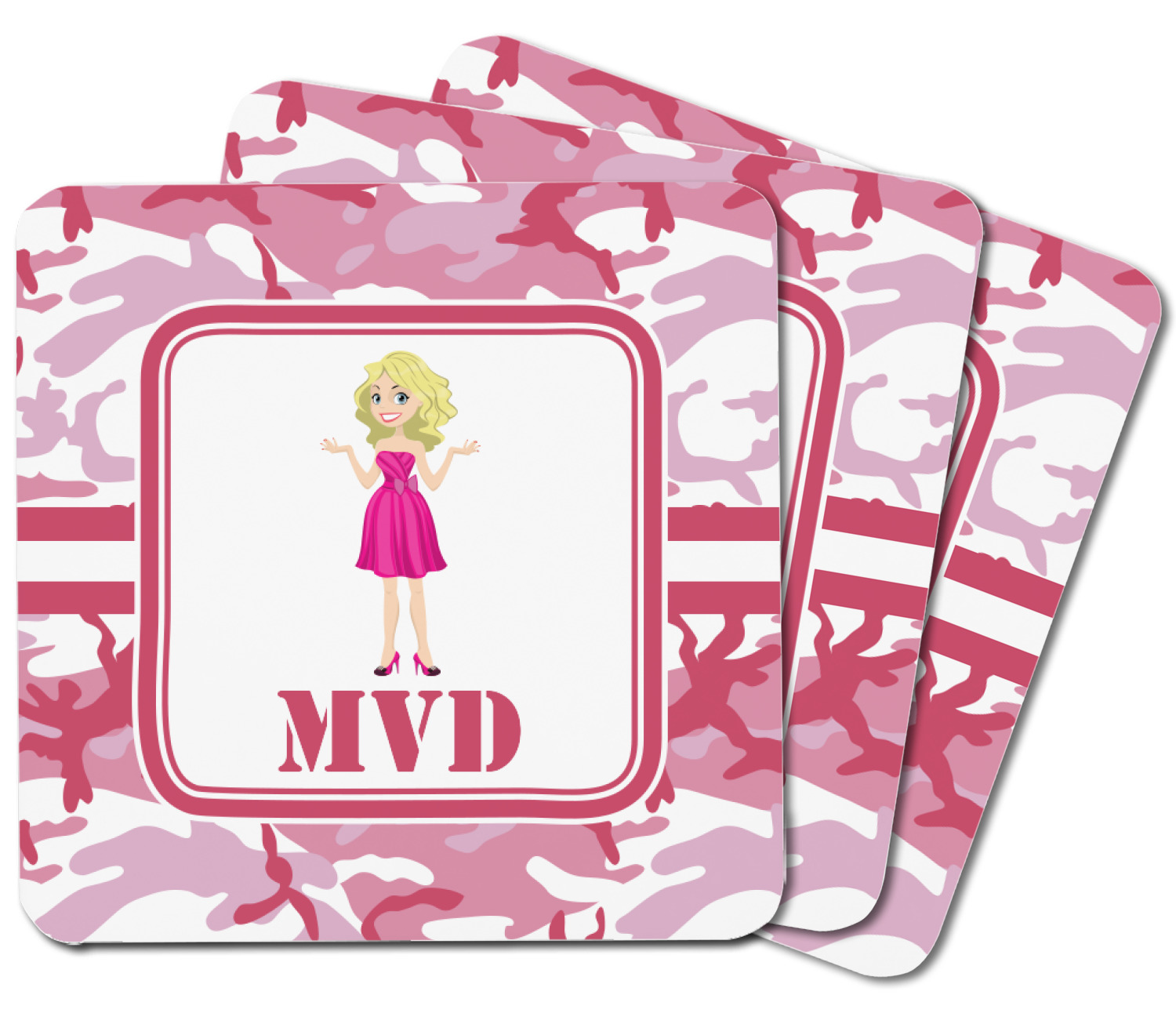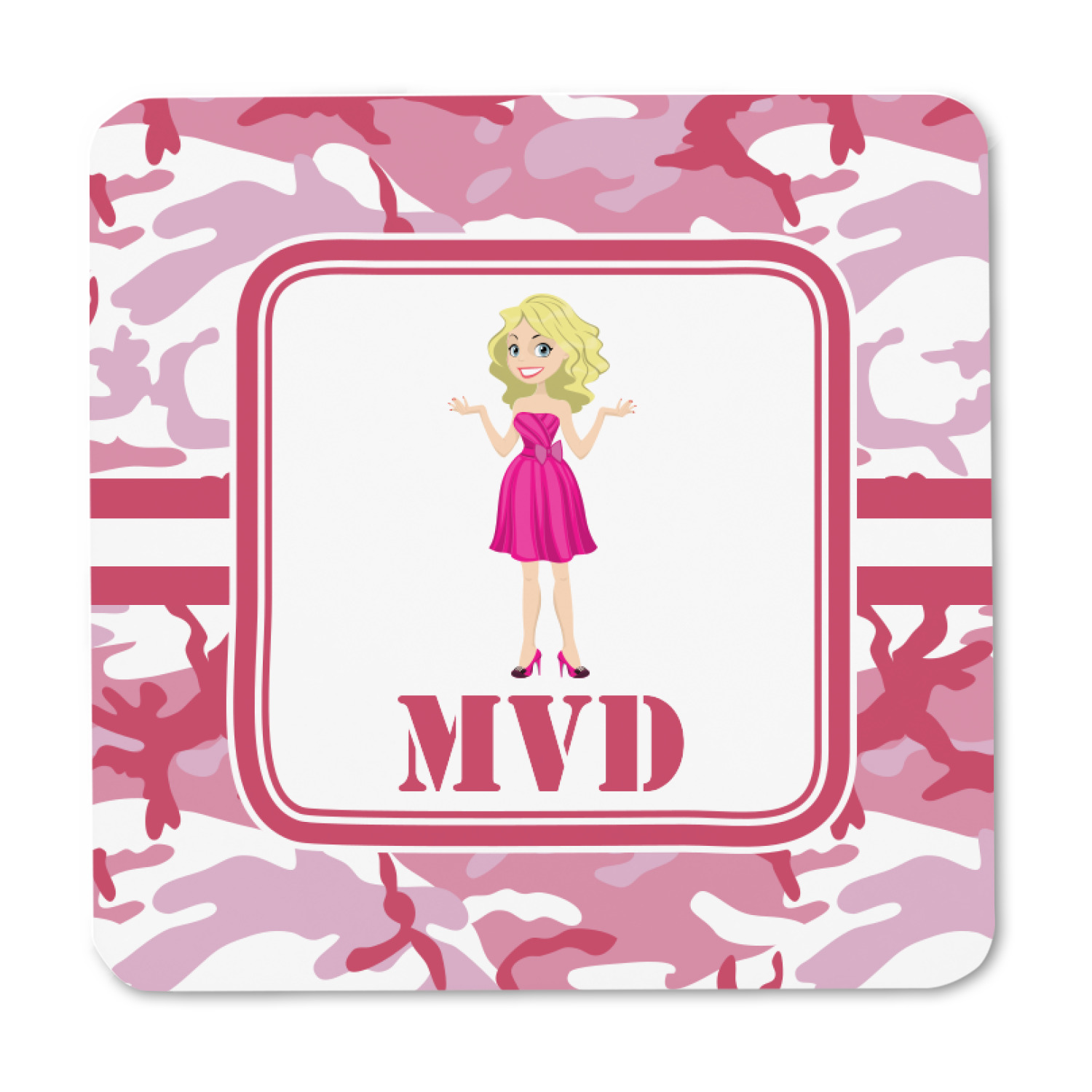 We have featured our little army girl, wearing her pink camo helmet, in the middle of the design in a pink and white square. A wide white band trimmed in pink tie everything together.