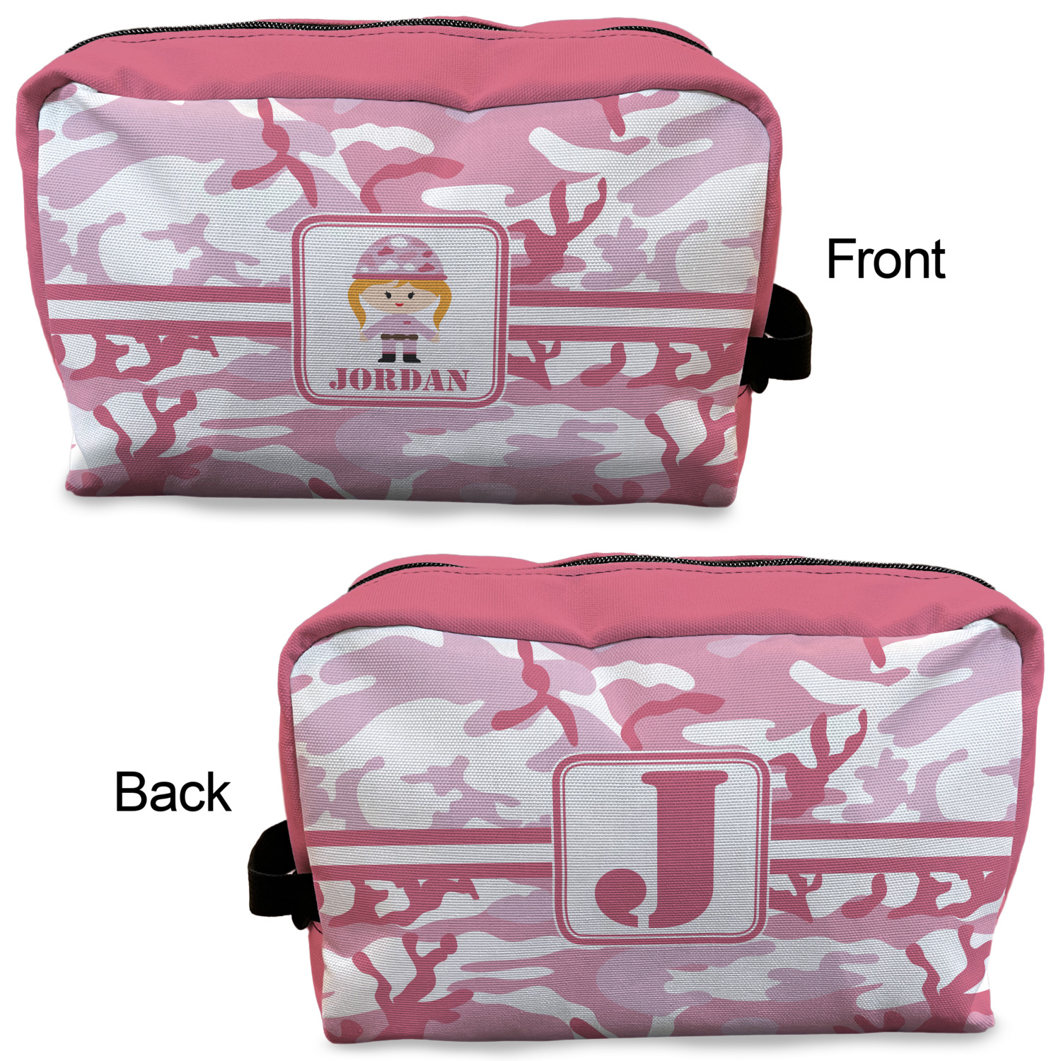 Designing a toiletry bag for yourself or as a gift can be a lot of fun. Our goal is for you to design a bag that reflects your personality and personal style. Our dopp kits are set up so you can design the front, the back and select a coordinating color for the zippered area.