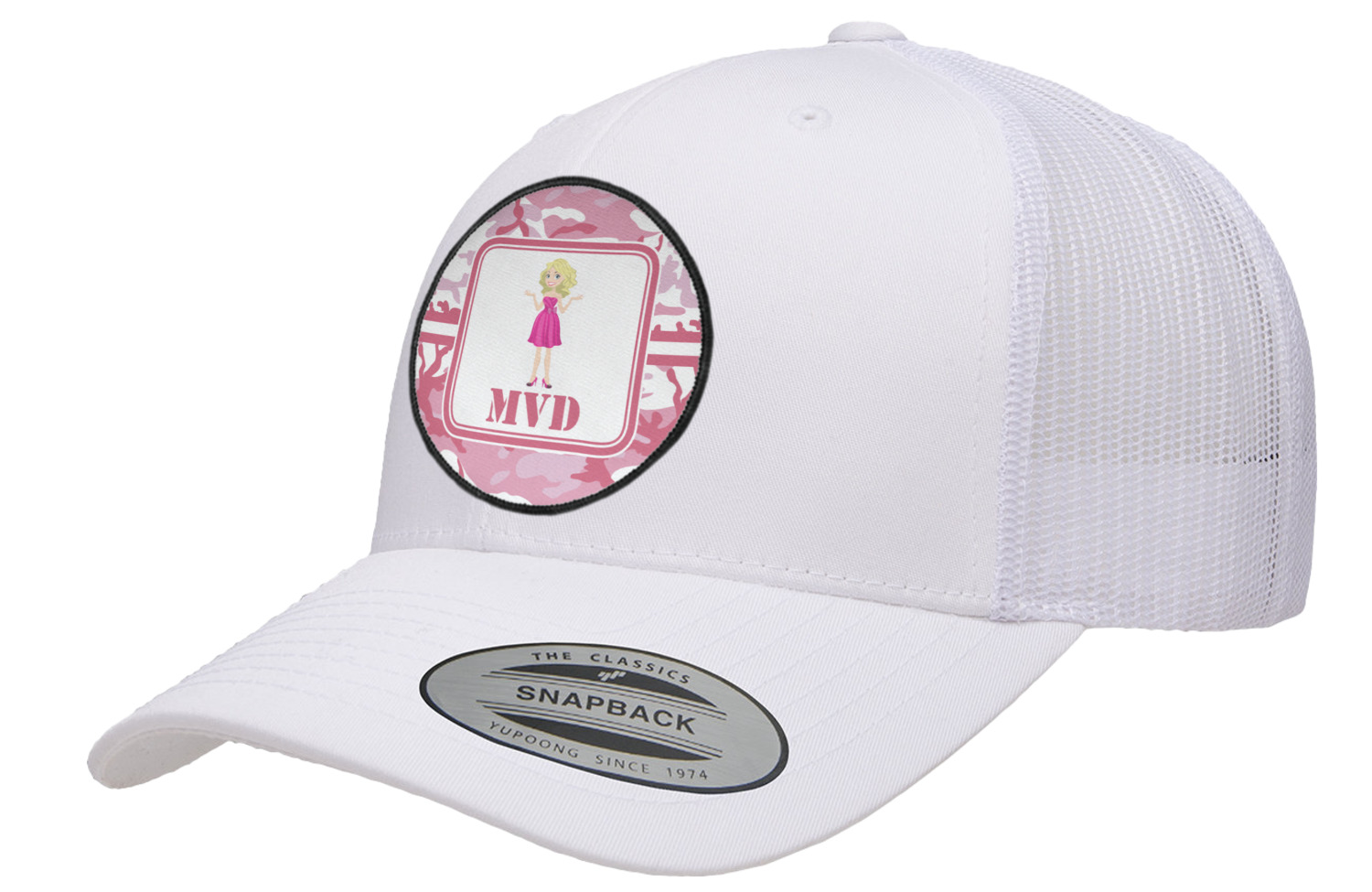 We have featured our little army girl, wearing her pink camo helmet, in the middle of the design in a pink and white square. A wide white band trimmed in pink tie everything together.