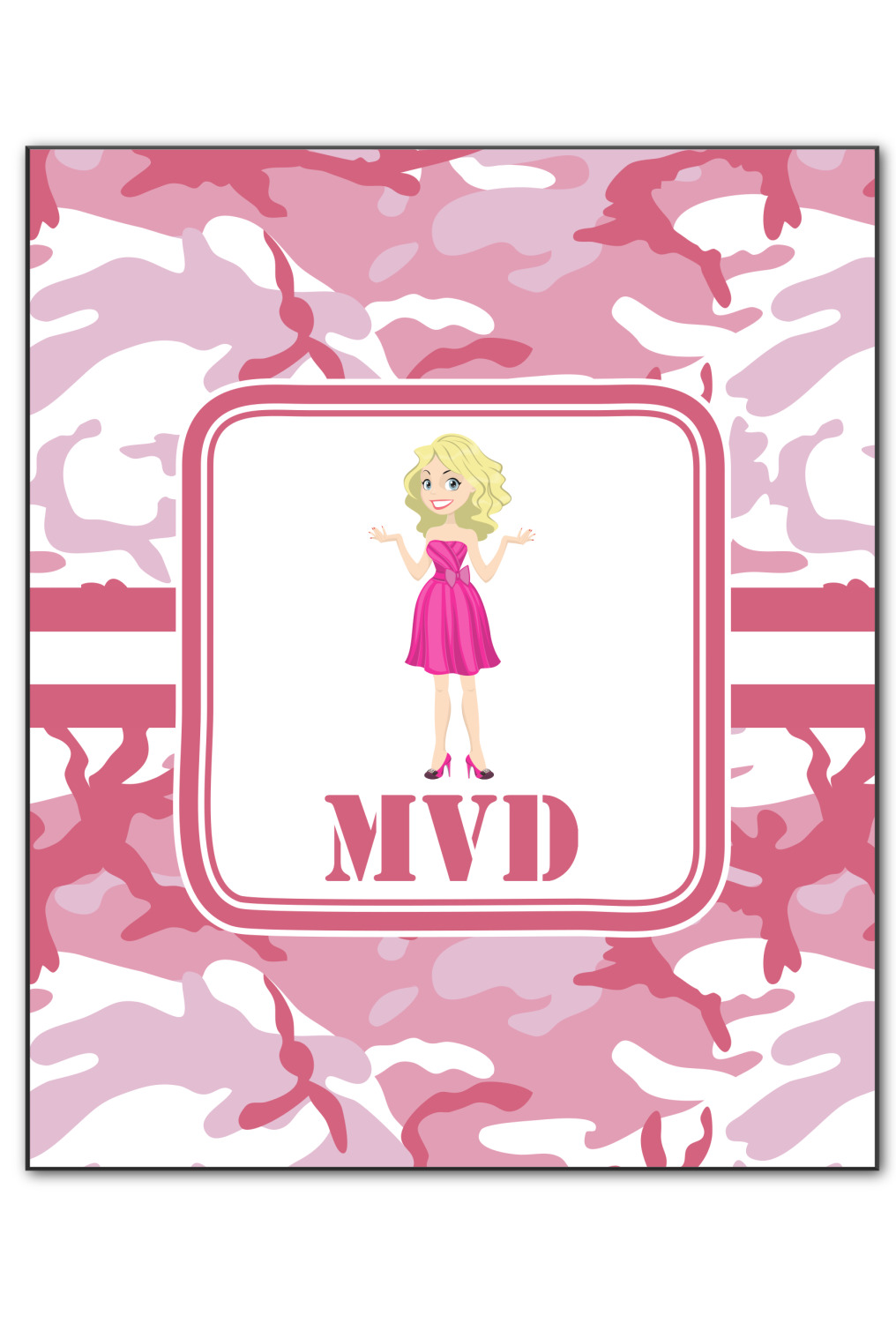 We have featured our little army girl, wearing her pink camo helmet, in the middle of the design in a pink and white square. A wide white band trimmed in pink tie everything together.