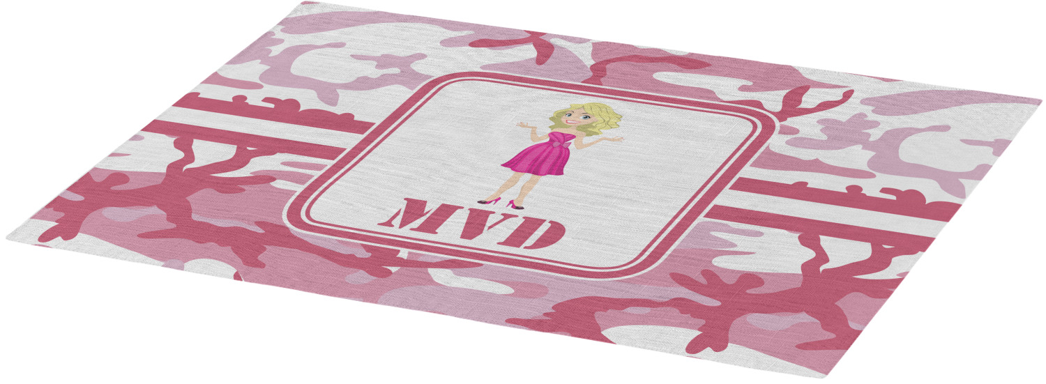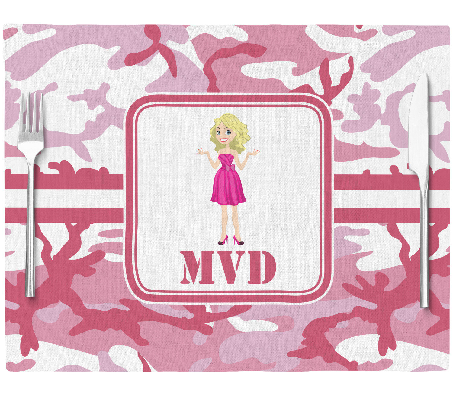 Each of our table mats are a poly twill material with woven burlap detailing. This creates a soft, quality placemat for us to fully print your personalized design across. The woven twill also adds a wrinkle-free surface to set your table! Each customizable placemat is a rectangle shape measuring at approximately 13 x 18 and printed here in the USA.