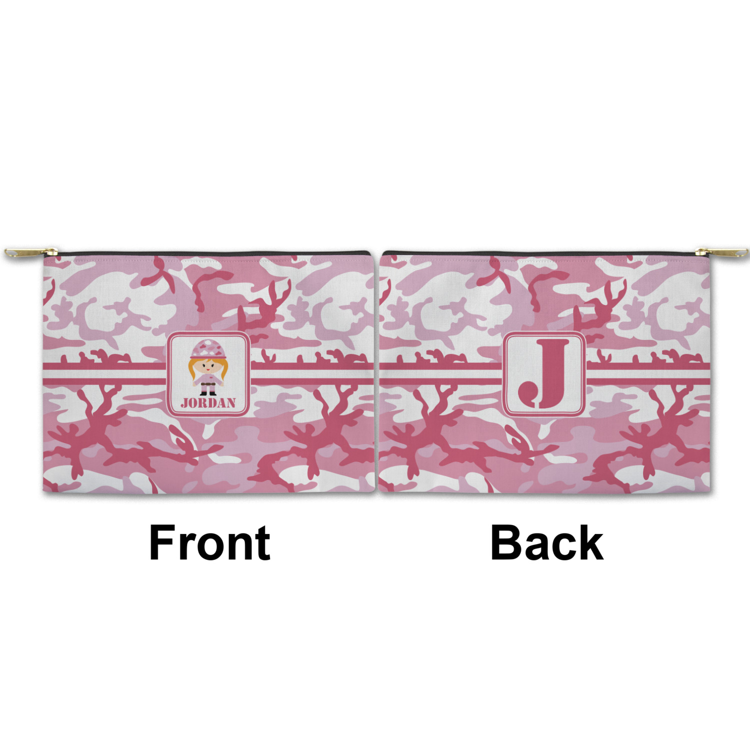You can design both the front and the back of the pouch - same design, two complementary designs or two totally different designs - the choice is yours! We offer many different personalization styles i.e. name, name & initial, monograms - so the choice to personalize is also yours.