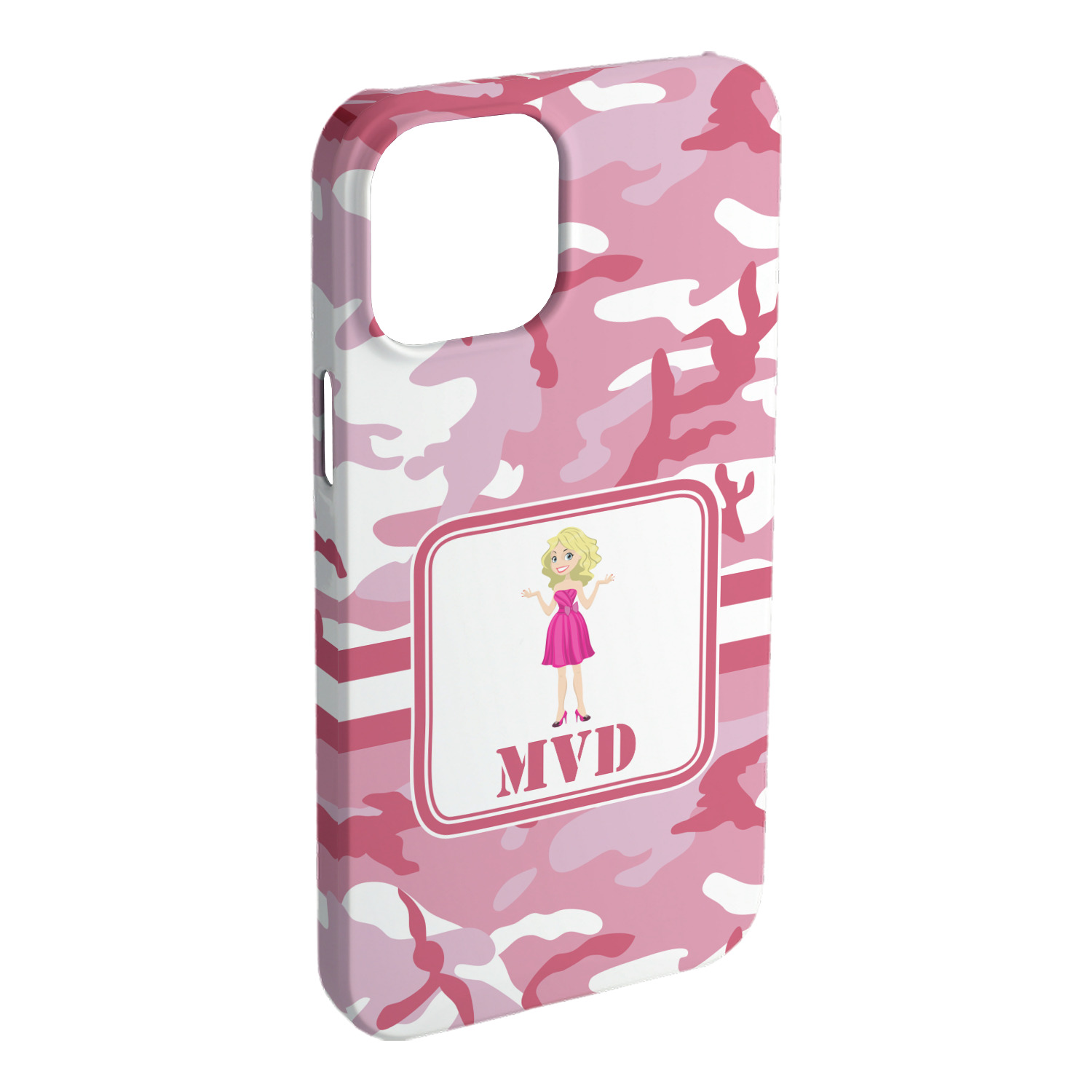 We have featured our little army girl, wearing her pink camo helmet, in the middle of the design in a pink and white square. A wide white band trimmed in pink tie everything together.