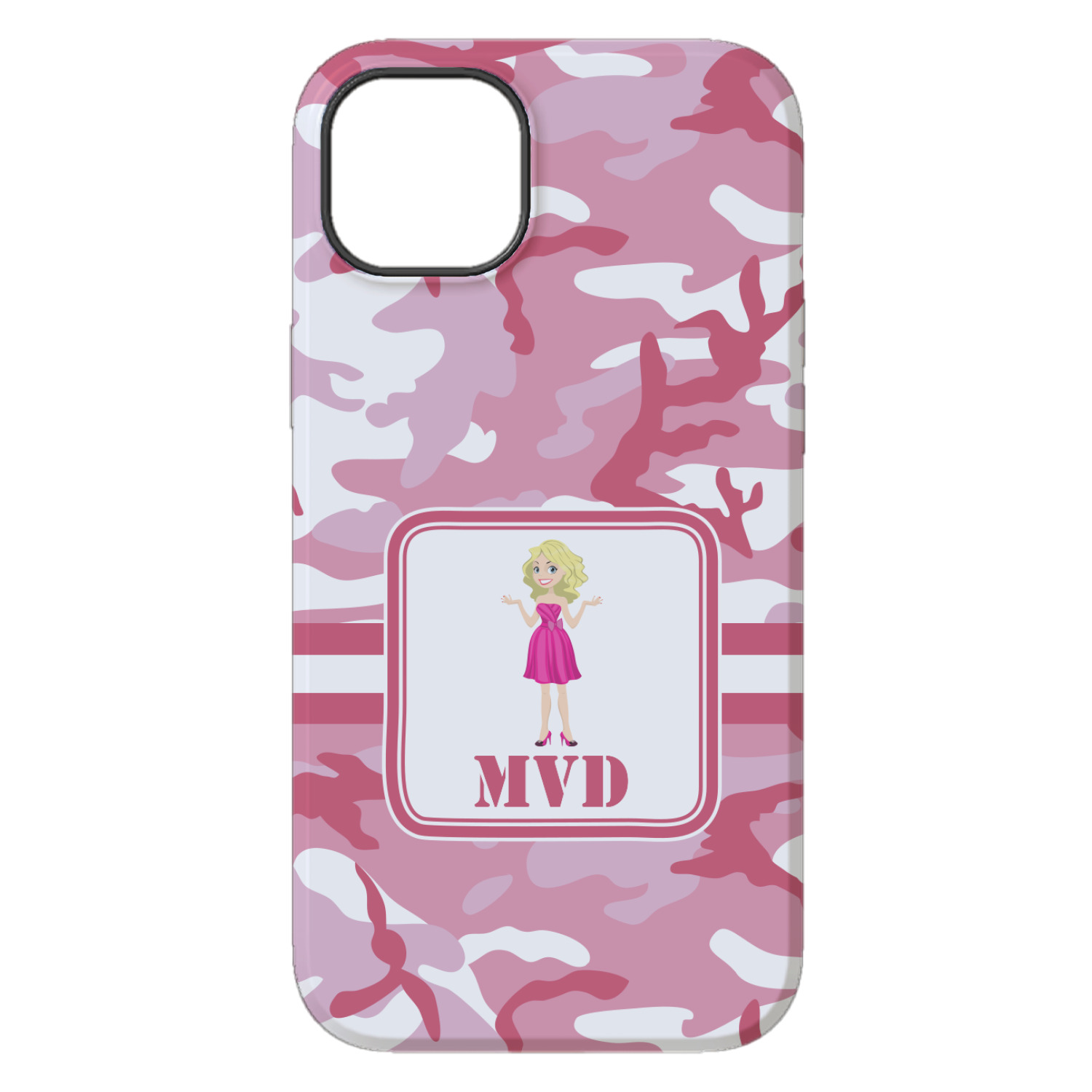 We have featured our little army girl, wearing her pink camo helmet, in the middle of the design in a pink and white square. A wide white band trimmed in pink tie everything together.