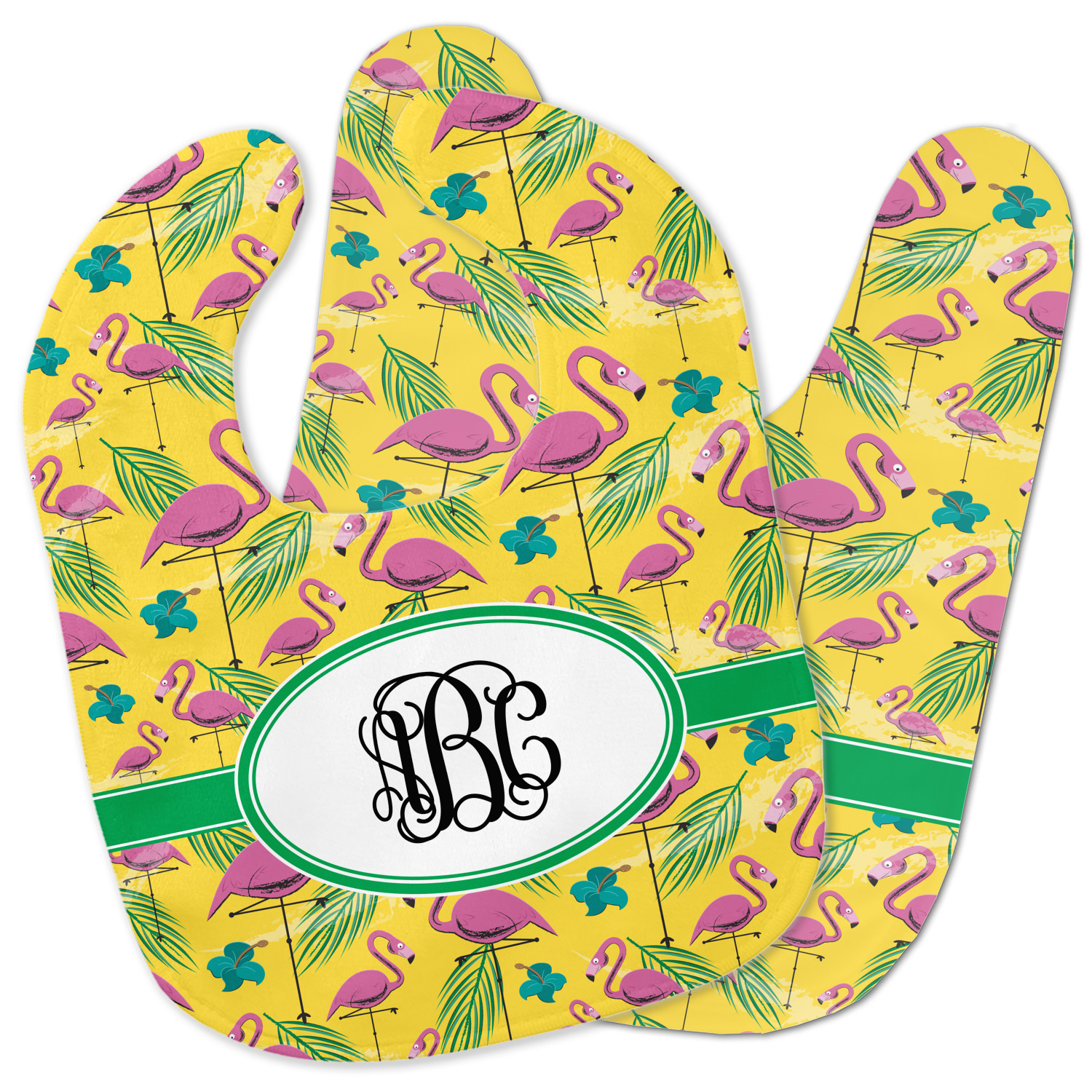 Made of soft polyester, each customizable bib hugs comfortably around the neck to catch every drip and drool. Each bib design is printed with baby-safe ink and finished with a secure stitch pattern and velcro clasp. We carry two customizable bib styles -Microfiber Velour and Jersey Knit.