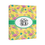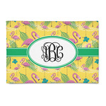 The idyllic tropical vacation includes palm trees, flirty flowers, and flamingos. This design encompasses all these things and more, on a bright yellow background with sand sprawled carefully throughout.