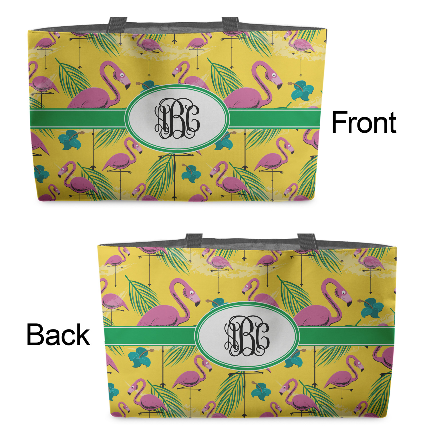 These beach totes are handmade here in the USA. Fabric is printed with your design. The tote is then sewn from the fabric pieces, lining and handles added.