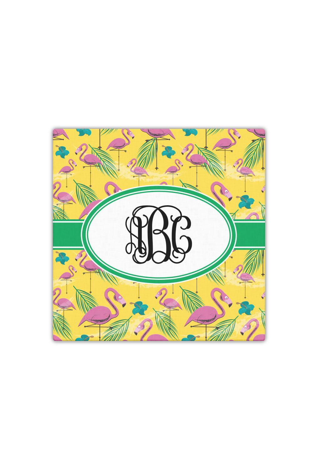 The idyllic tropical vacation includes palm trees, flirty flowers, and flamingos. This design encompasses all these things and more, on a bright yellow background with sand sprawled carefully throughout.