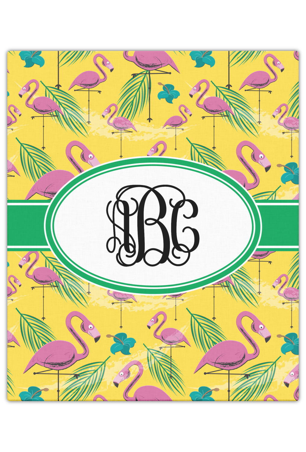 The idyllic tropical vacation includes palm trees, flirty flowers, and flamingos. This design encompasses all these things and more, on a bright yellow background with sand sprawled carefully throughout.