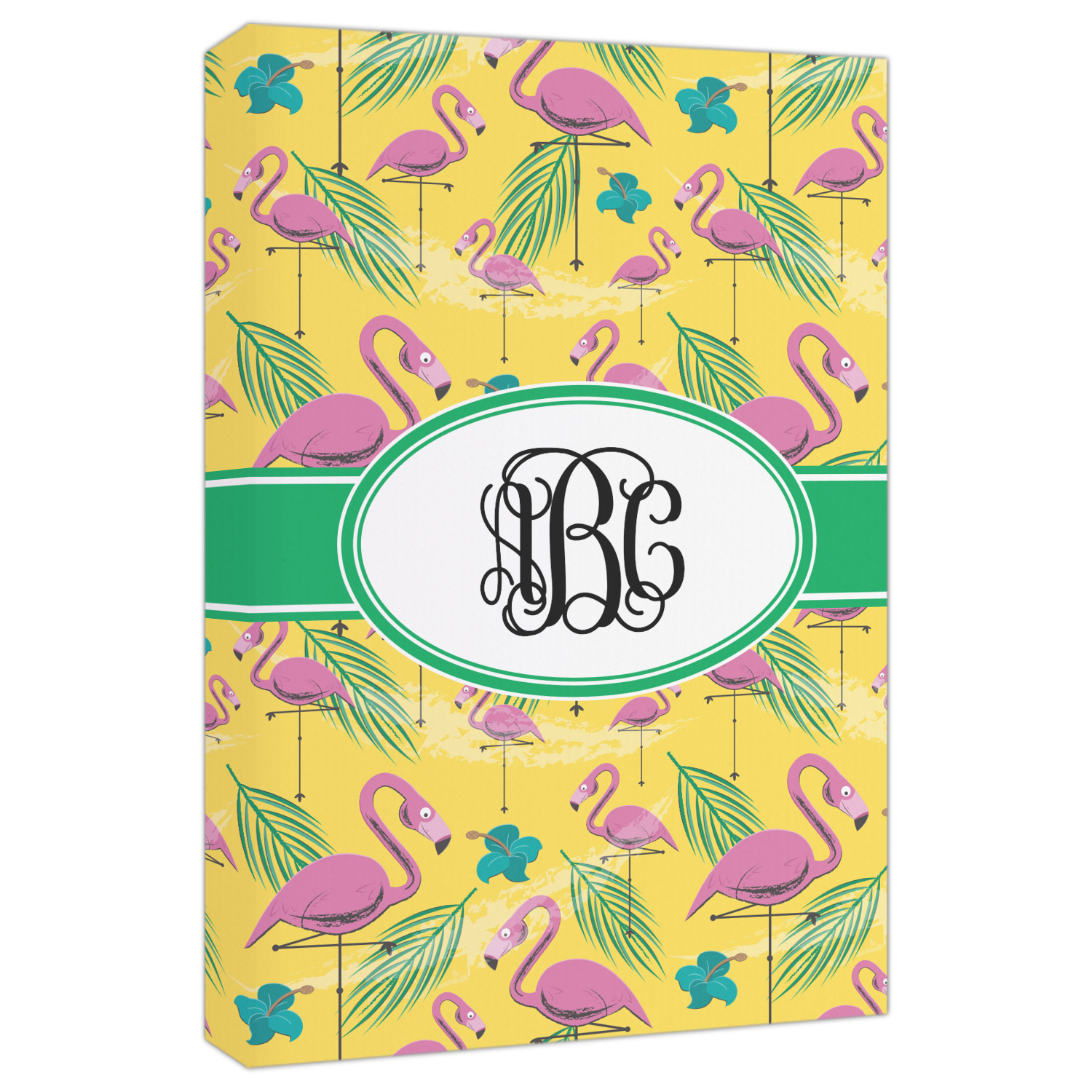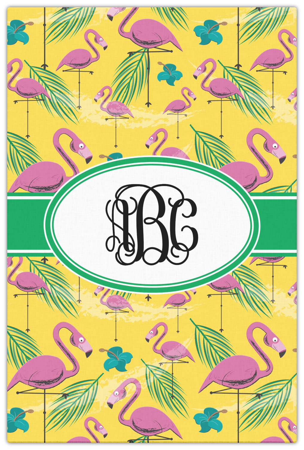 The idyllic tropical vacation includes palm trees, flirty flowers, and flamingos. This design encompasses all these things and more, on a bright yellow background with sand sprawled carefully throughout.