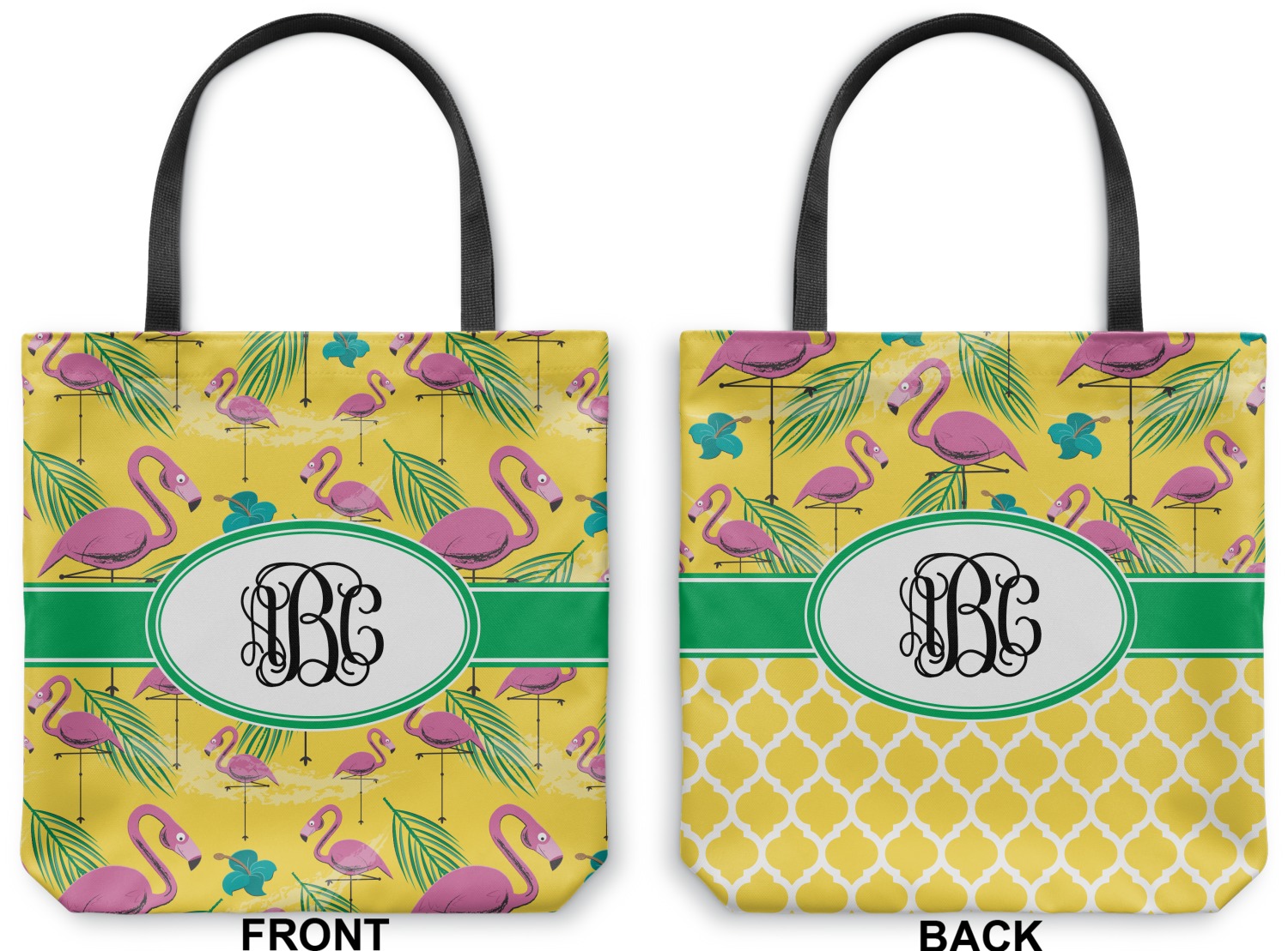 Our totes are made right here in the USA. Your design is printed on canvas fabric; the fabric is then cut and sewn on the sides and on the bottom to add an approximately 3.5 inch gusset. Black cotton handles are sewn in and reinforced. Your tote has a designs on both sides - the designs can be the same or different - the choice is yours. The inside of the tote has a black fused lining.