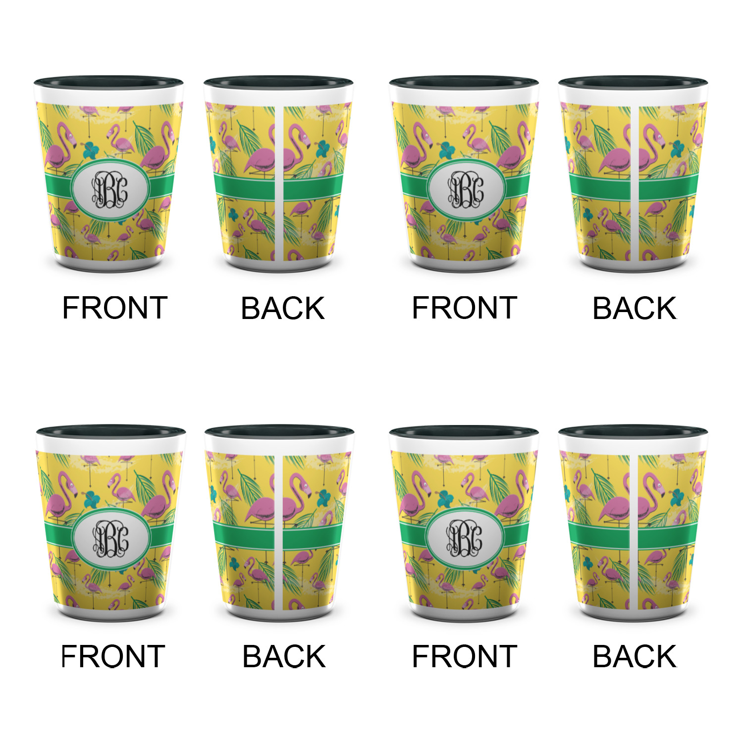Made from ceramic these shot glasses are printed in full color with the design of your choice. These are a standard 1.5oz size and stand 2.25" tall. Available in a full white ceramic or a two-tone with a black color inside the shot glass. Buy a single or a set of 4, all of which can be designed separately to get you just what you want and need.