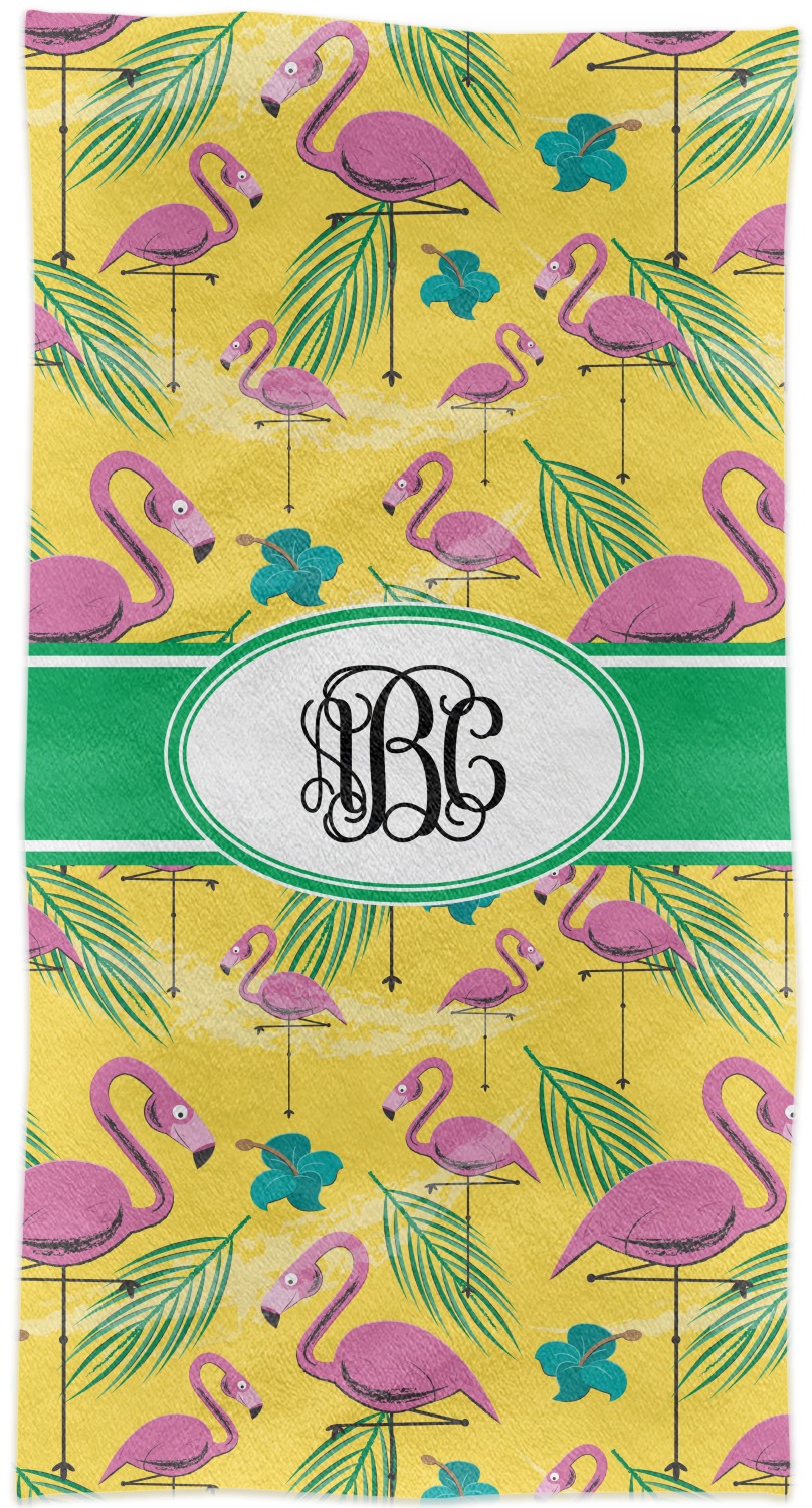 The idyllic tropical vacation includes palm trees, flirty flowers, and flamingos. This design encompasses all these things and more, on a bright yellow background with sand sprawled carefully throughout.