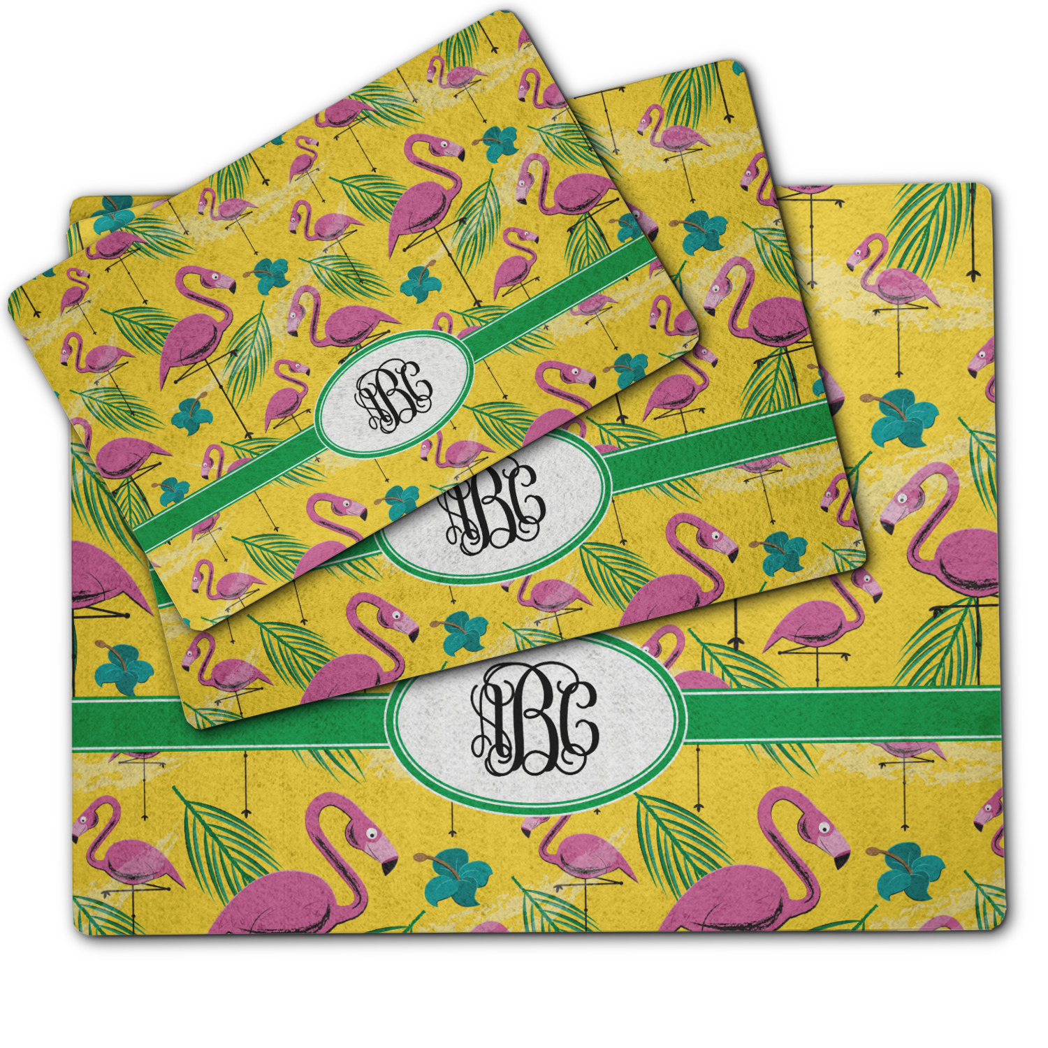 The idyllic tropical vacation includes palm trees, flirty flowers, and flamingos. This design encompasses all these things and more, on a bright yellow background with sand sprawled carefully throughout.