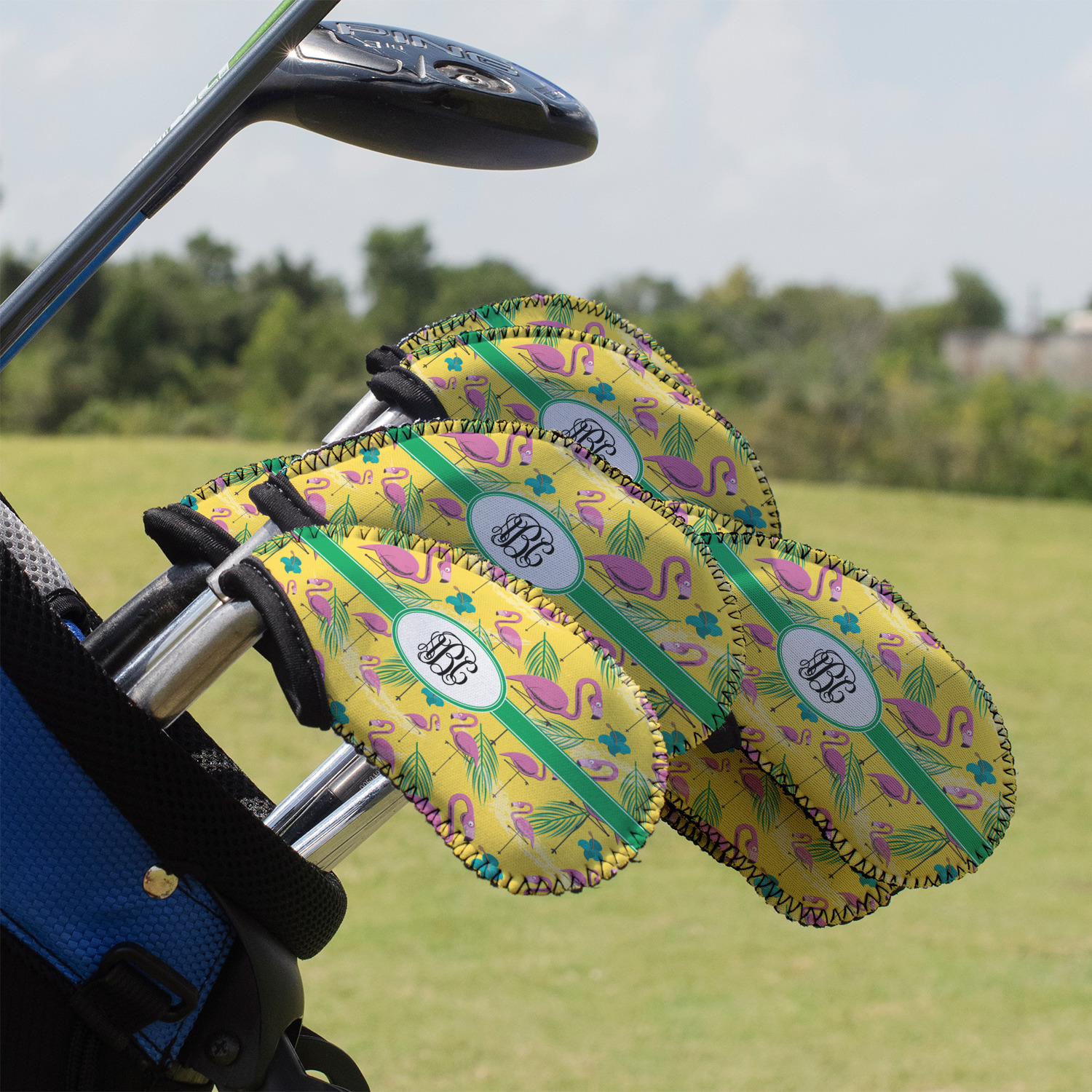 The idyllic tropical vacation includes palm trees, flirty flowers, and flamingos. This design encompasses all these things and more, on a bright yellow background with sand sprawled carefully throughout.