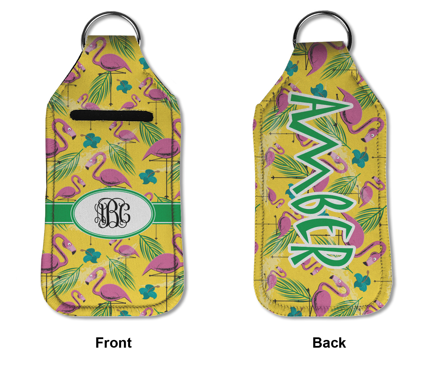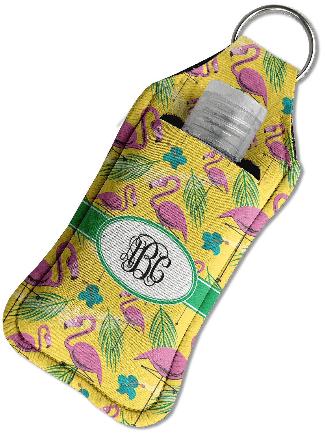 Each hand sanitizer holder comes with its own empty travel-sized, refillable hand sanitizer sure to fit snug in your customized sanitizer case! Our hand sanitizer cases are a durable, yet soft neoprene material sure to last any daily activities or travel agenda. Customize and personalize a hand sanitizer bottle holder with one of our two sizes - small (4.25" x 2.25") or large (5.5" x 2.5"). Each travel sanitizer holder comes with a keyring for attachment on bags, keys, or more!