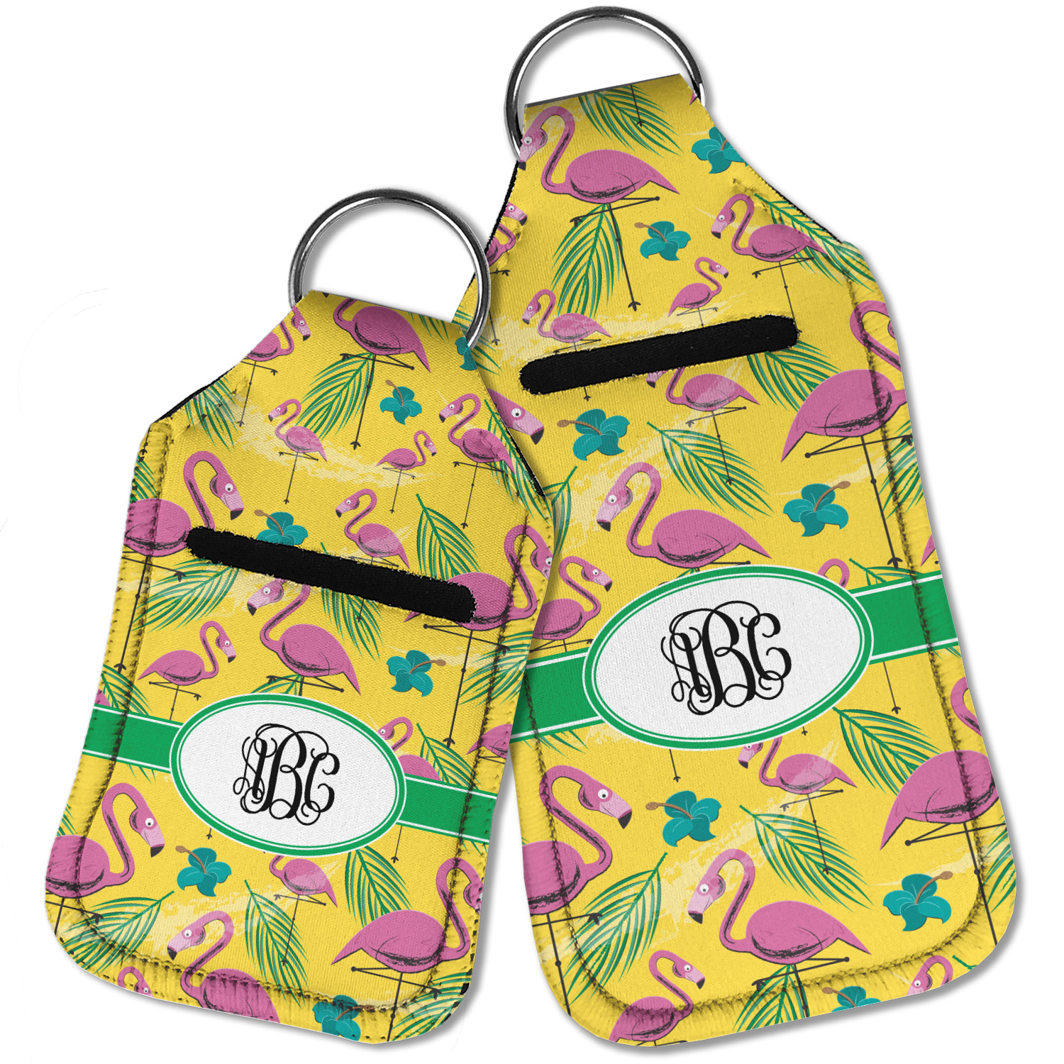 Each hand sanitizer holder comes with its own empty travel-sized, refillable hand sanitizer sure to fit snug in your customized sanitizer case! Our hand sanitizer cases are a durable, yet soft neoprene material sure to last any daily activities or travel agenda. Customize and personalize a hand sanitizer bottle holder with one of our two sizes - small (4.25" x 2.25") or large (5.5" x 2.5"). Each travel sanitizer holder comes with a keyring for attachment on bags, keys, or more!