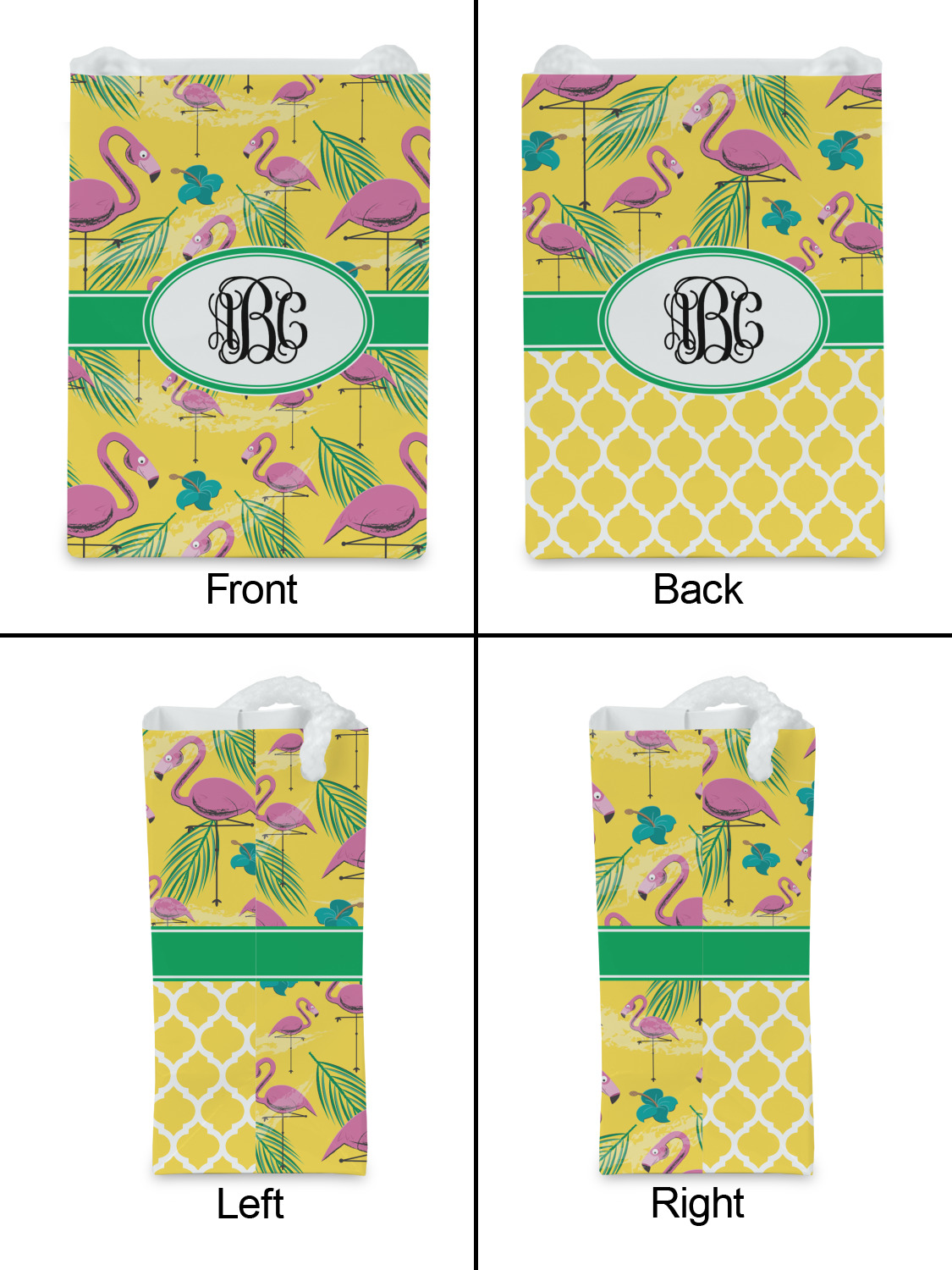 These jewelry gift bags are available in two finishes - matte or gloss. The are digitally printed in full color, then cut down to size, scored & folded. A single handle is attached.