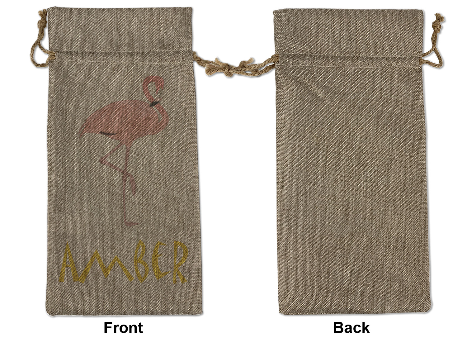 We sell our Burlap Gift Bags in 3 variant sized bags. Made with burlap polyester, each personalized bag can be secured with a twine drawstring pull. Your custom design is available to print on one side or both sides - completely up to you! The sizes of the bags measure approximately 4.5" x 6.5" for the smallest size, 6.5" x 8.0" for the medium size, and 6.5" x 13.5" for the large-sized bag.