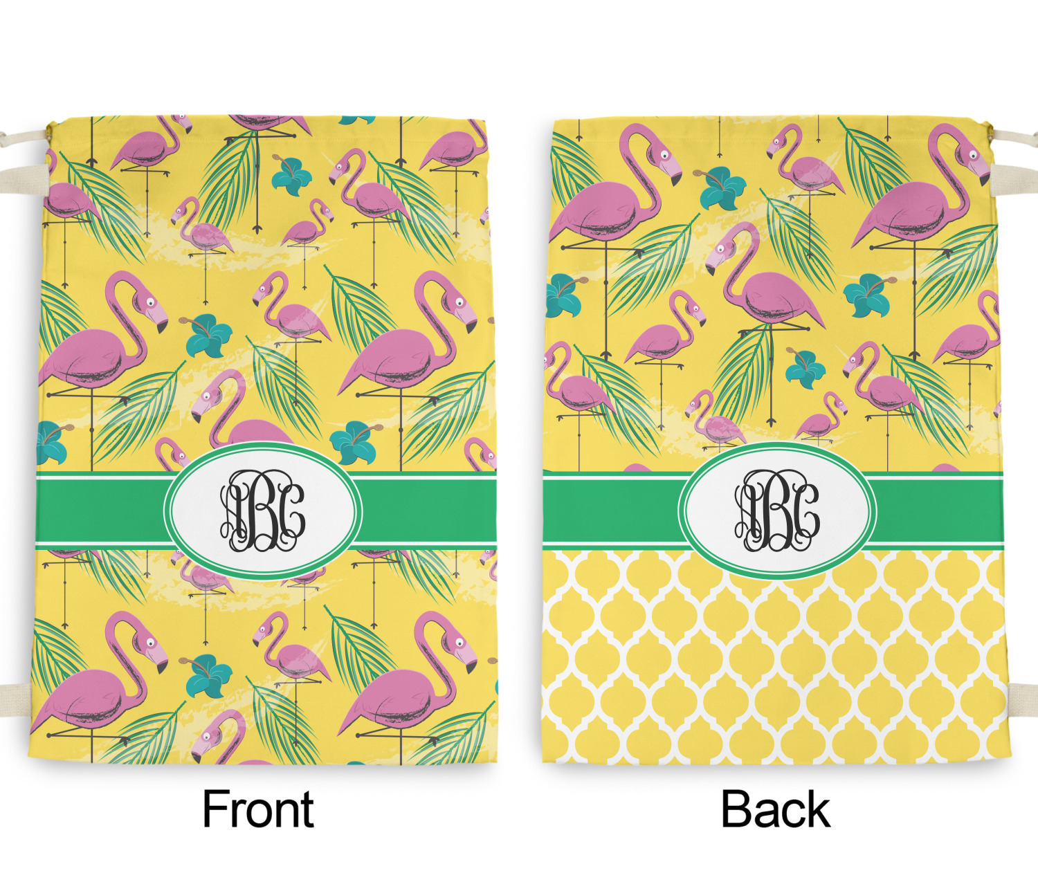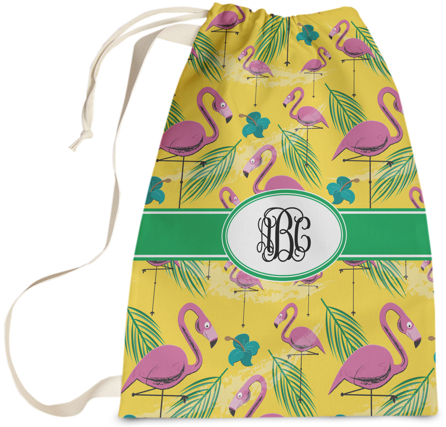 Carry your laundry in style with these customized laundry bags. Available in two sizes, featuring a natural colored woven strap and a cinch cord, these bags hold a lot of clothes or anything else you want to fit in them.