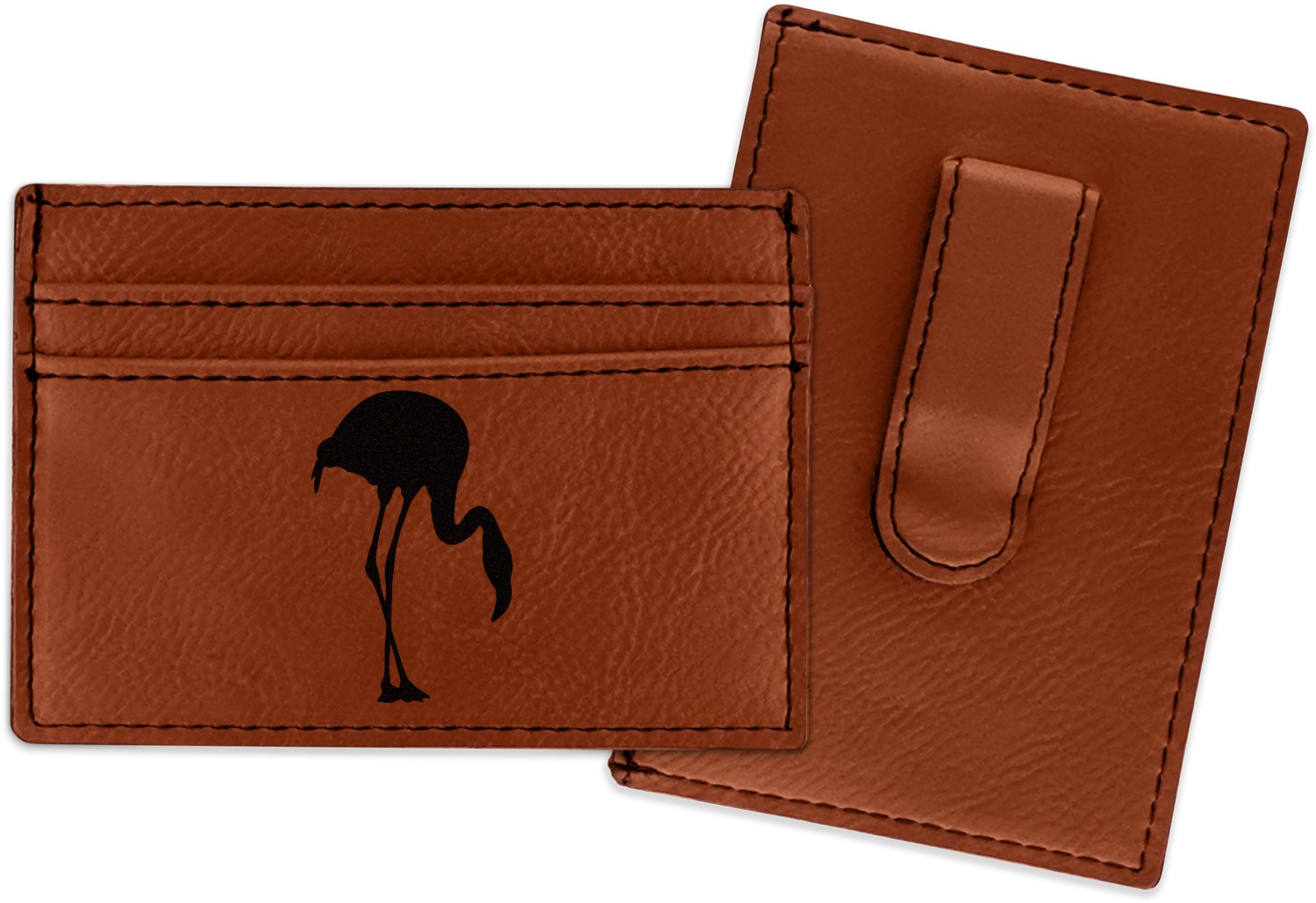 Made from a smooth brown leatherette material, these money clip wallets are the perfect accessory. They measure at approximately 4" x 2.75". On one side there is a money clip where you can slip in your cash. On the other side are three card slots for an ID and credit card or two. The money clip wallet will be laser engraved with your design on the side with the credit card slots. The graphic will come out as a black color.