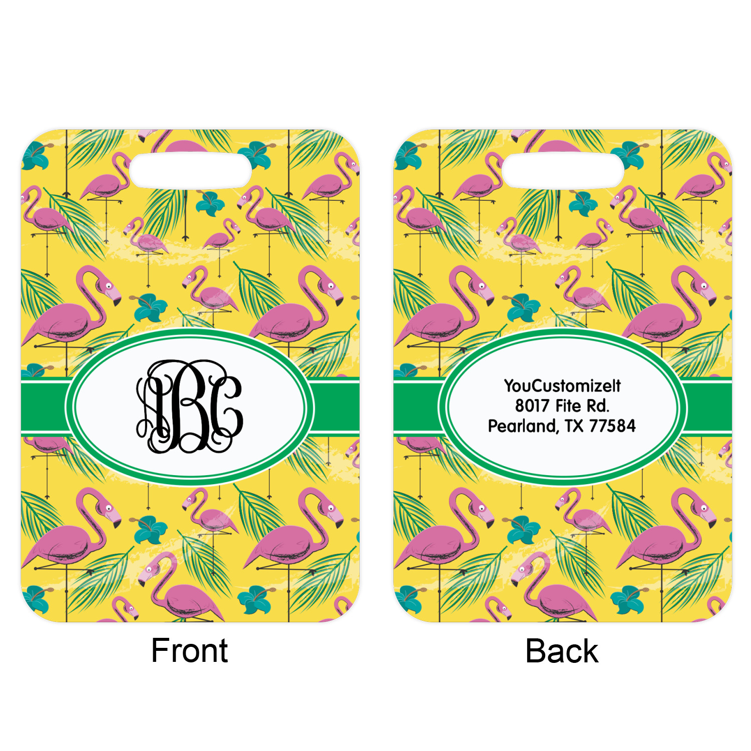 These metal luggage tags are printed on both sides; the front is printed with the design of your choice - and can be personalized with your name, name & initial or your monogram. The back can have as much or as little of your contact information as you desire - your name, your address, city, zip & state, you can also include your phone number and email address. Customize it exactly the way you want it!