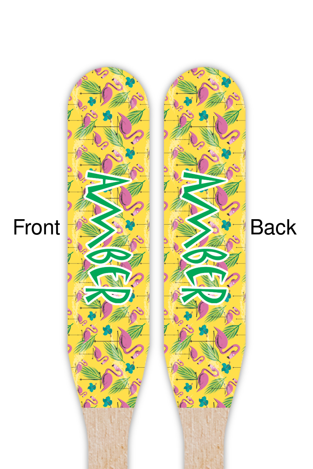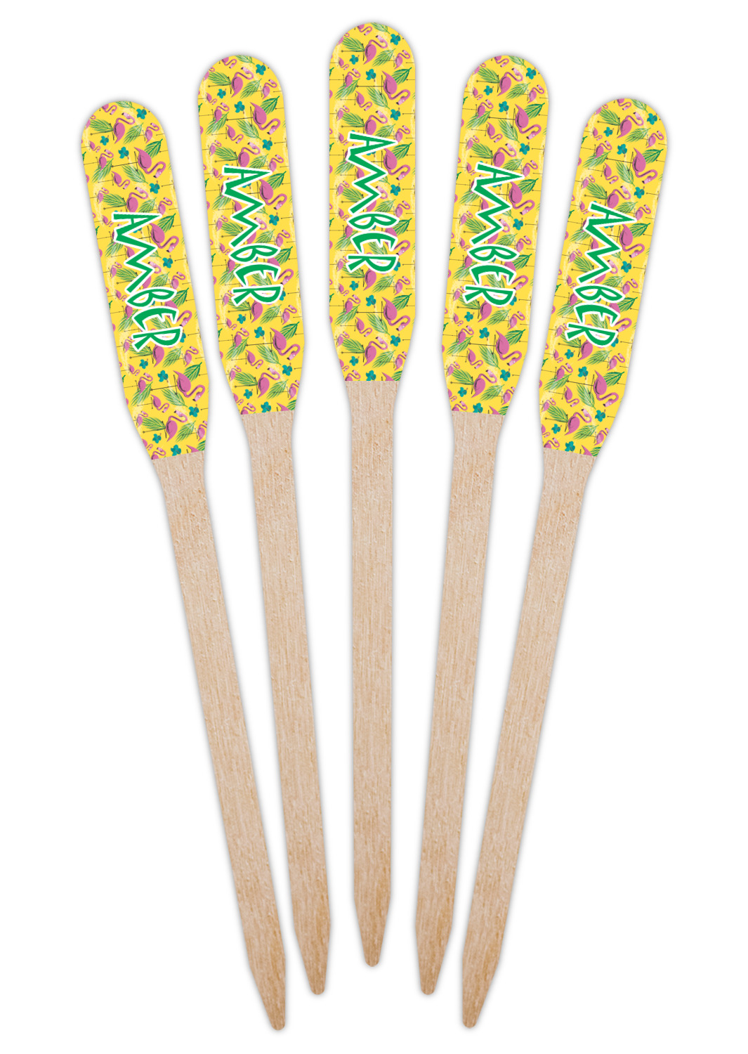 Our paddle style food & drink picks are available in 2 print styles - single sided and double sided.