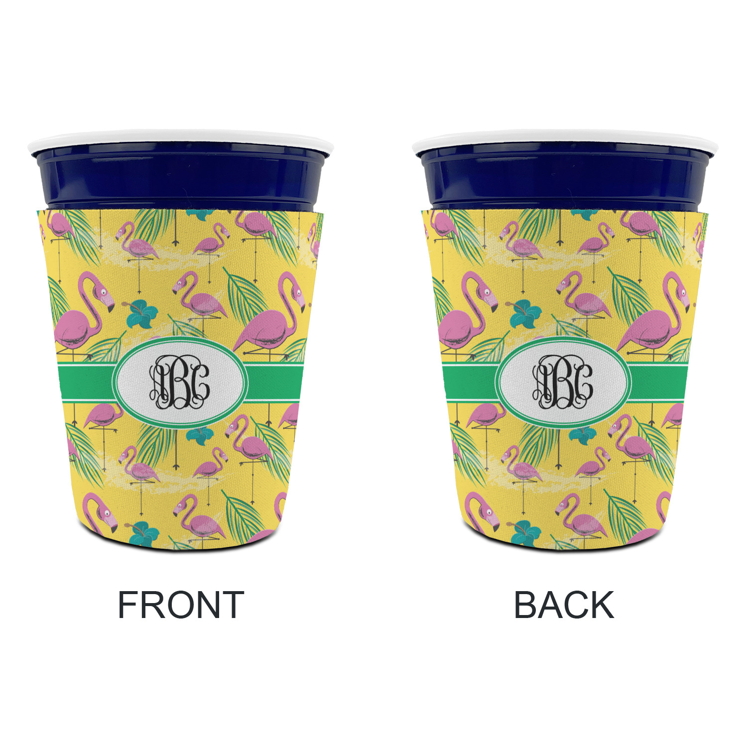 Made from neoprene with a polyester outer fabric and sewn seams, these premium quality party cup sleeves are very durable and will hold up to heavy use. They are available in 2 styles - with a bottom or just a sleeve to go around the outside of the tapered cup. The sleeve covers are about 4" tall and cover about 90% of the classic 16 oz. Solo cup.