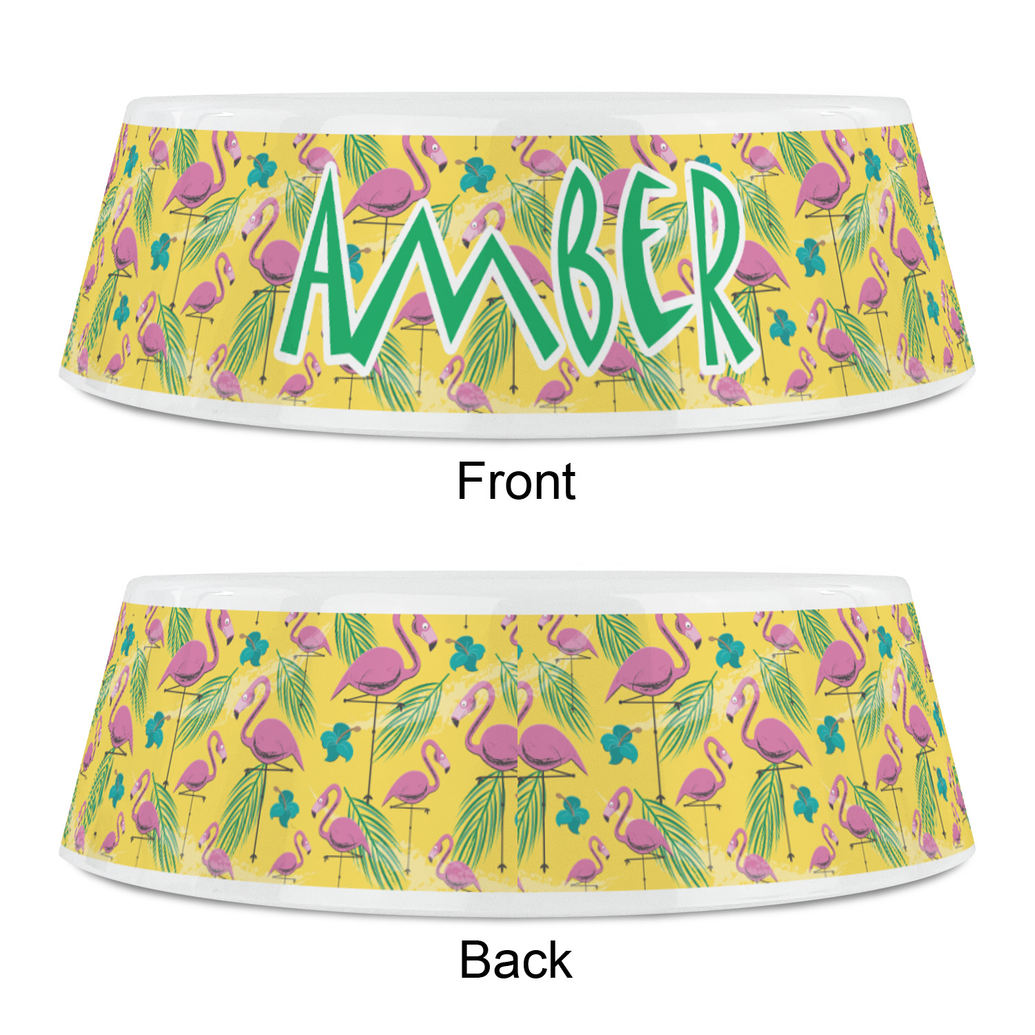 The idyllic tropical vacation includes palm trees, flirty flowers, and flamingos. This design encompasses all these things and more, on a bright yellow background with sand sprawled carefully throughout.