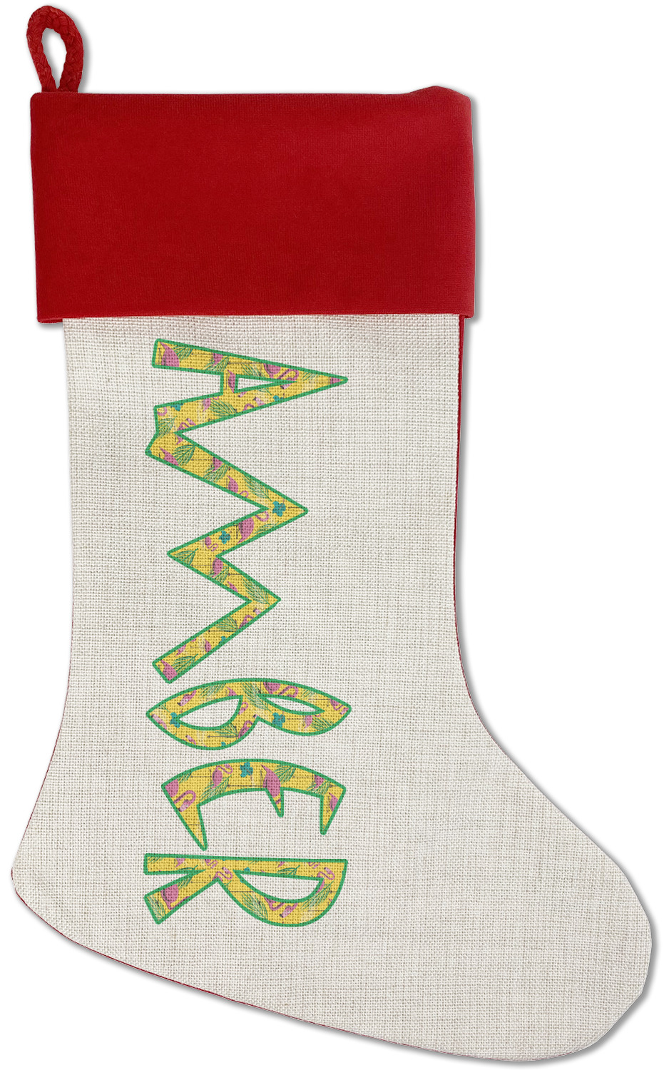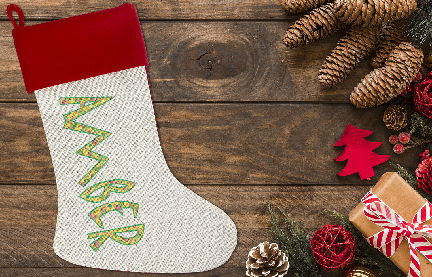 Our classic red stockings are made from a soft, yet durable polyester material perfect for any stocking stuffer! The front of our Christmas stockings have a linen front that boldly displays your custom design accented with a lush red cuff resting all around the stocking. Each stocking is approximately 18x12 with a durable cotton rope loop for hanging.