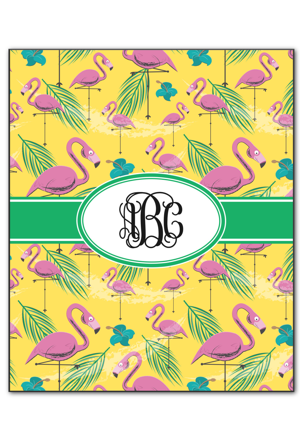The idyllic tropical vacation includes palm trees, flirty flowers, and flamingos. This design encompasses all these things and more, on a bright yellow background with sand sprawled carefully throughout.