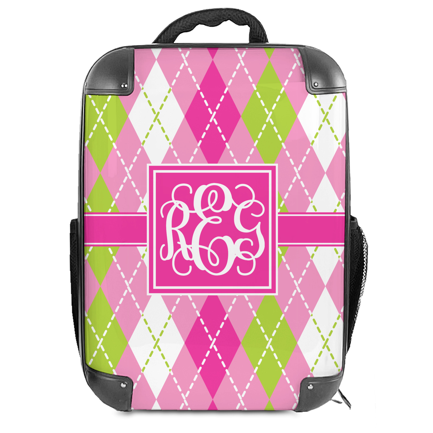Looking for a preppy, yet still girly girl design? This pink and green argyle print with a square label and an interlocking monogram is as girly as it gets. We have created this argyle pattern in lime green, orchid pink and hot pink. For all of us girly girls and preppies and princesses, this design is a favorite!
