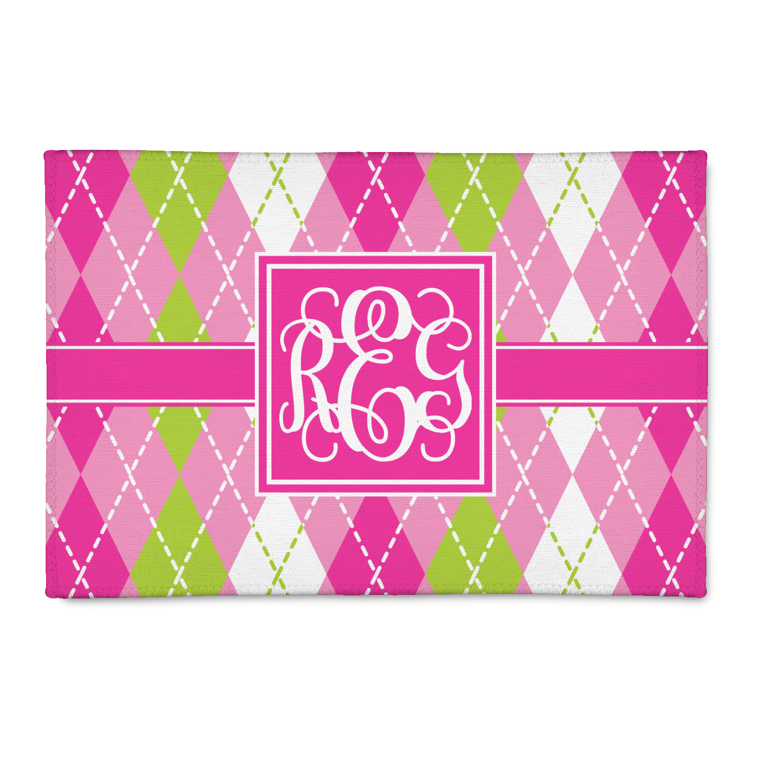 Looking for a preppy, yet still girly girl design? This pink and green argyle print with a square label and an interlocking monogram is as girly as it gets. We have created this argyle pattern in lime green, orchid pink and hot pink. For all of us girly girls and preppies and princesses, this design is a favorite!