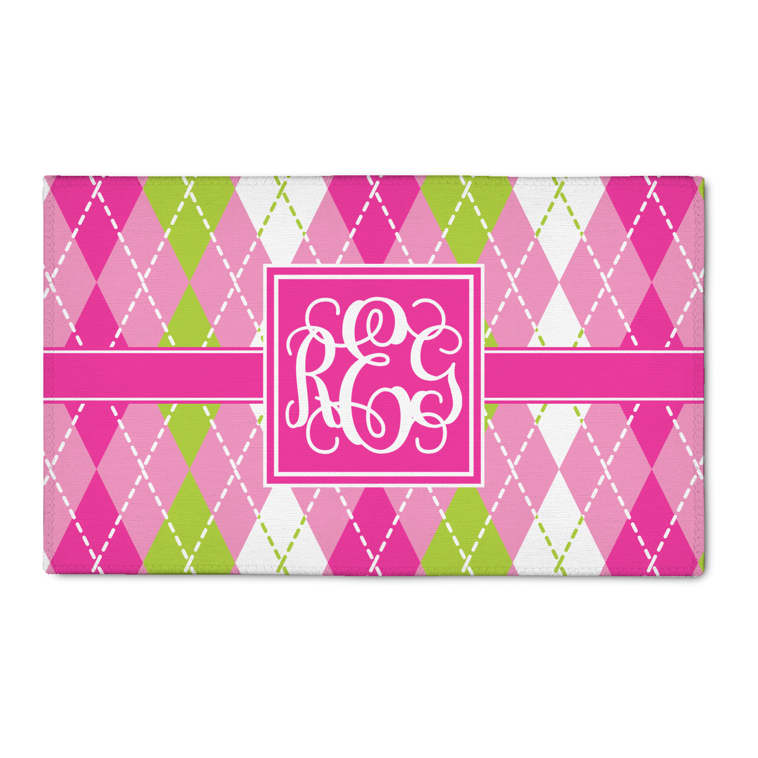 Looking for a preppy, yet still girly girl design? This pink and green argyle print with a square label and an interlocking monogram is as girly as it gets. We have created this argyle pattern in lime green, orchid pink and hot pink. For all of us girly girls and preppies and princesses, this design is a favorite!