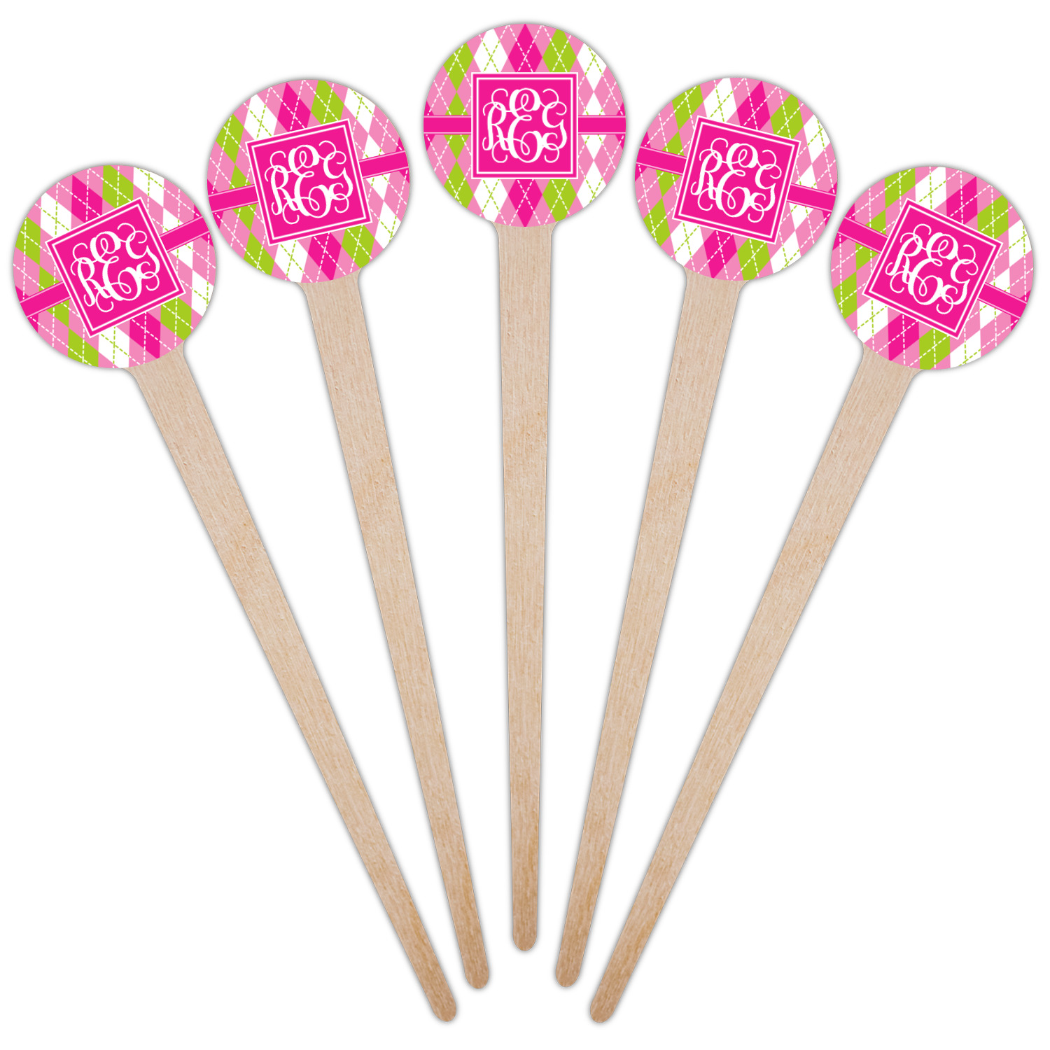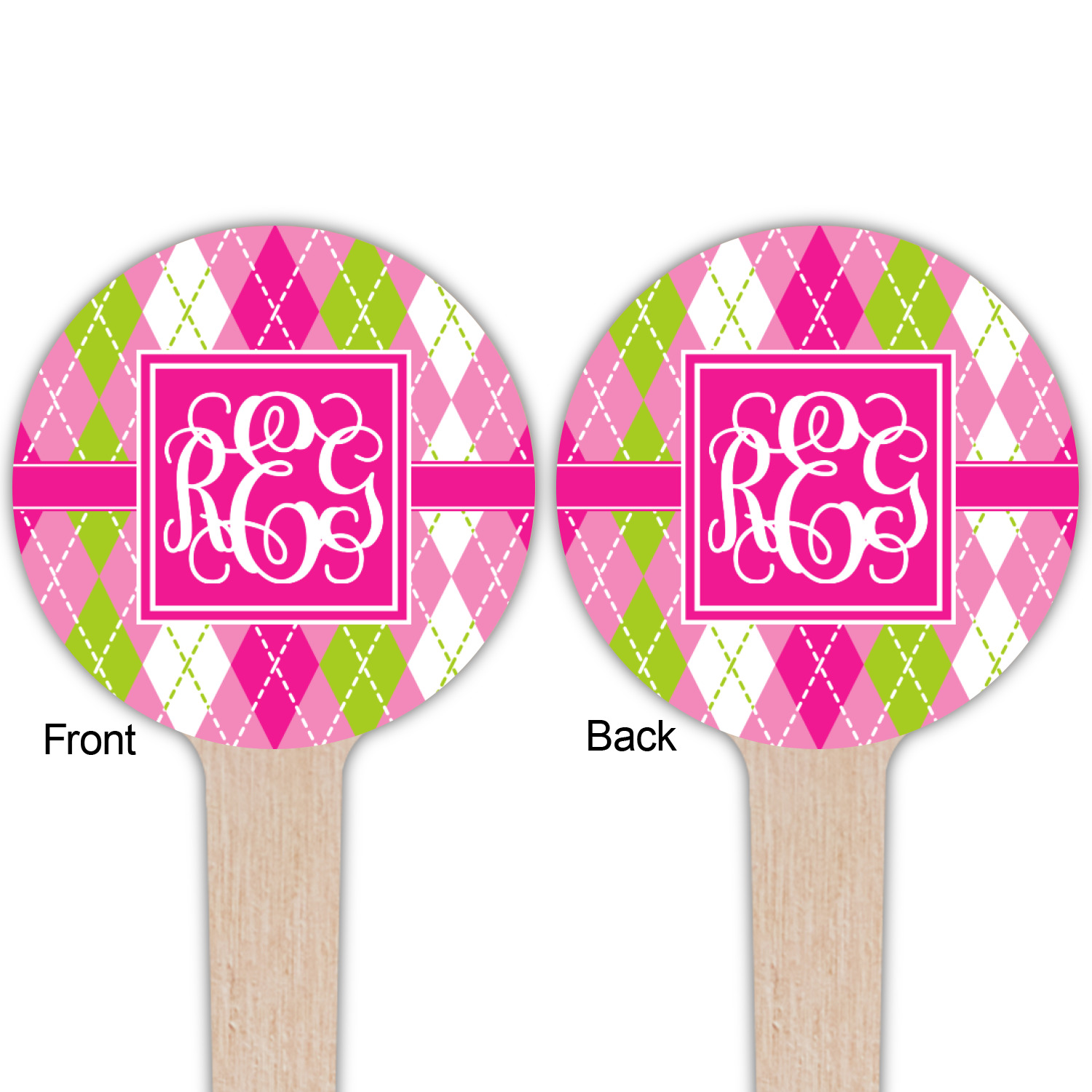 Looking for a preppy, yet still girly girl design? This pink and green argyle print with a square label and an interlocking monogram is as girly as it gets. We have created this argyle pattern in lime green, orchid pink and hot pink. For all of us girly girls and preppies and princesses, this design is a favorite!