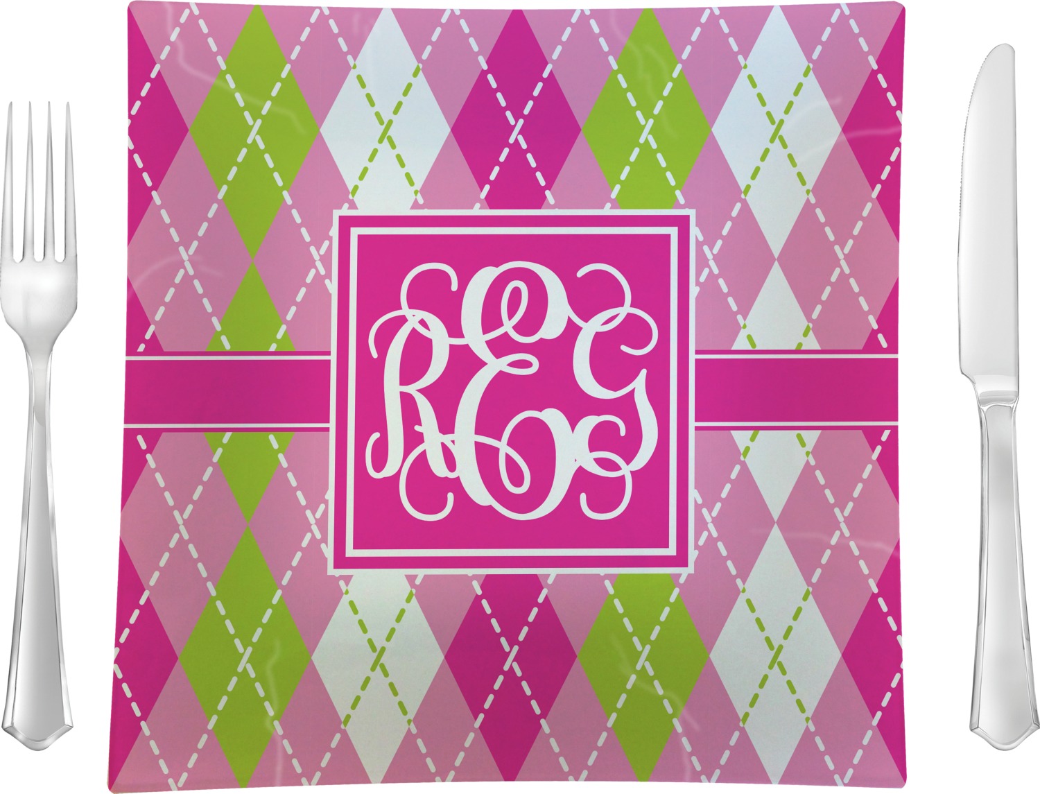 Looking for a preppy, yet still girly girl design? This pink and green argyle print with a square label and an interlocking monogram is as girly as it gets. We have created this argyle pattern in lime green, orchid pink and hot pink. For all of us girly girls and preppies and princesses, this design is a favorite!