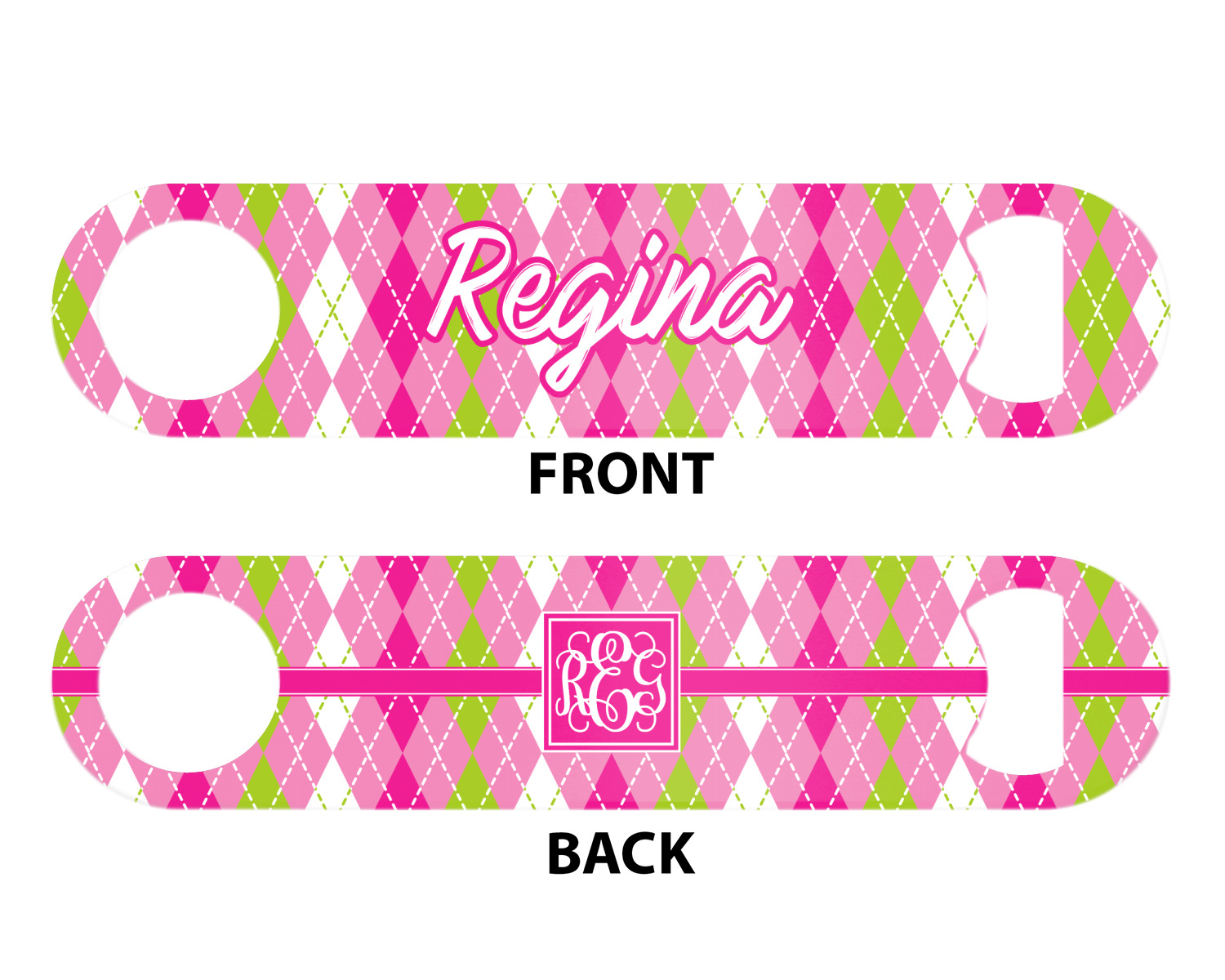 Looking for a preppy, yet still girly girl design? This pink and green argyle print with a square label and an interlocking monogram is as girly as it gets. We have created this argyle pattern in lime green, orchid pink and hot pink. For all of us girly girls and preppies and princesses, this design is a favorite!