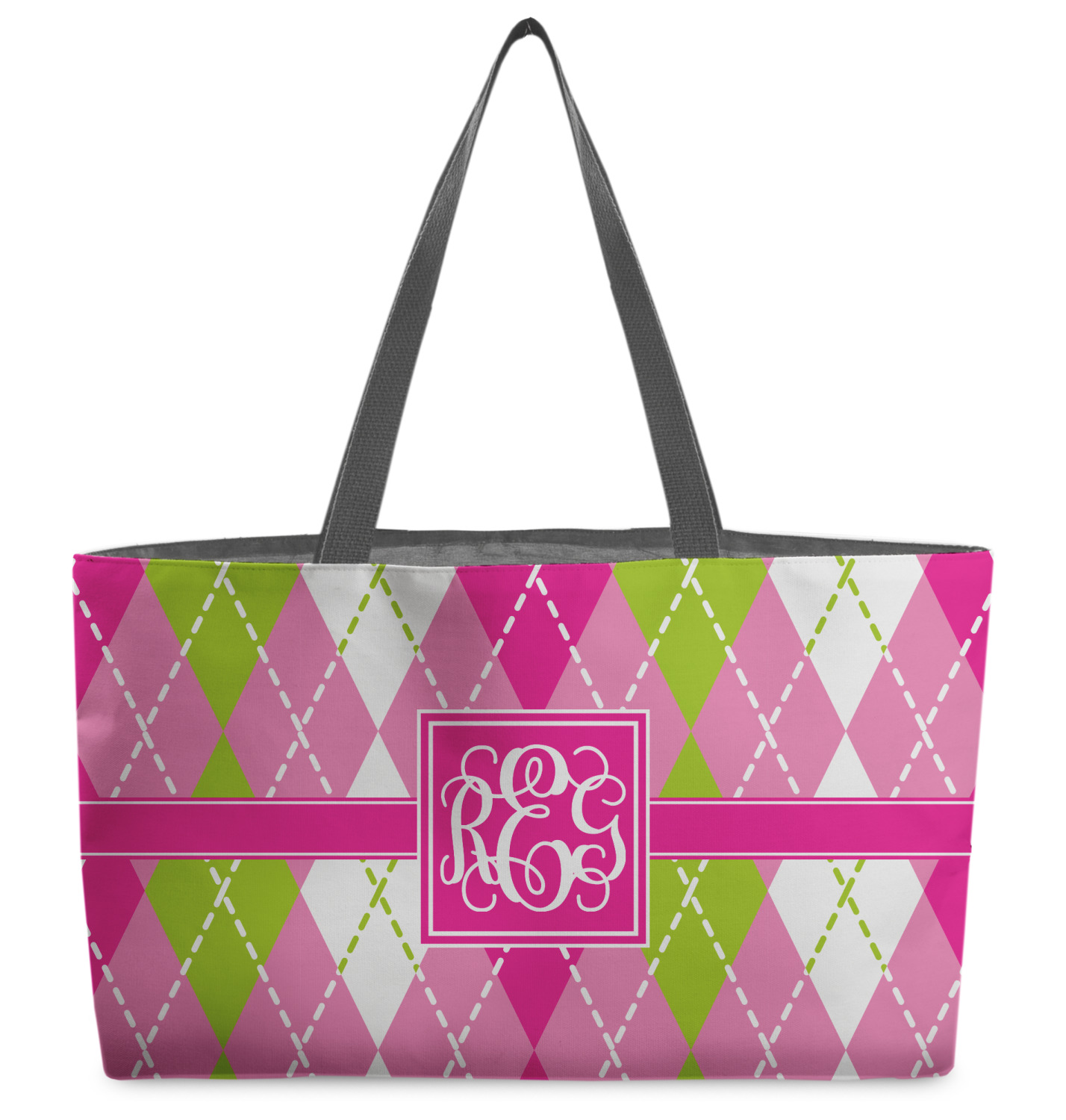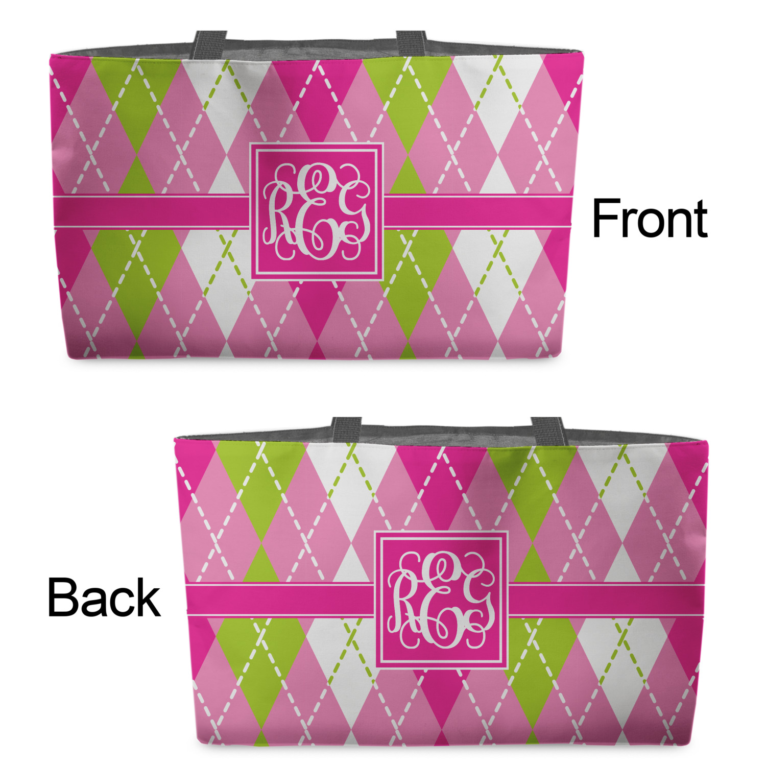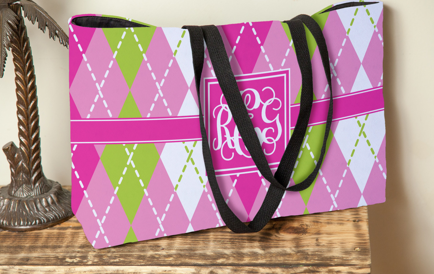 Looking for a preppy, yet still girly girl design? This pink and green argyle print with a square label and an interlocking monogram is as girly as it gets. We have created this argyle pattern in lime green, orchid pink and hot pink. For all of us girly girls and preppies and princesses, this design is a favorite!
