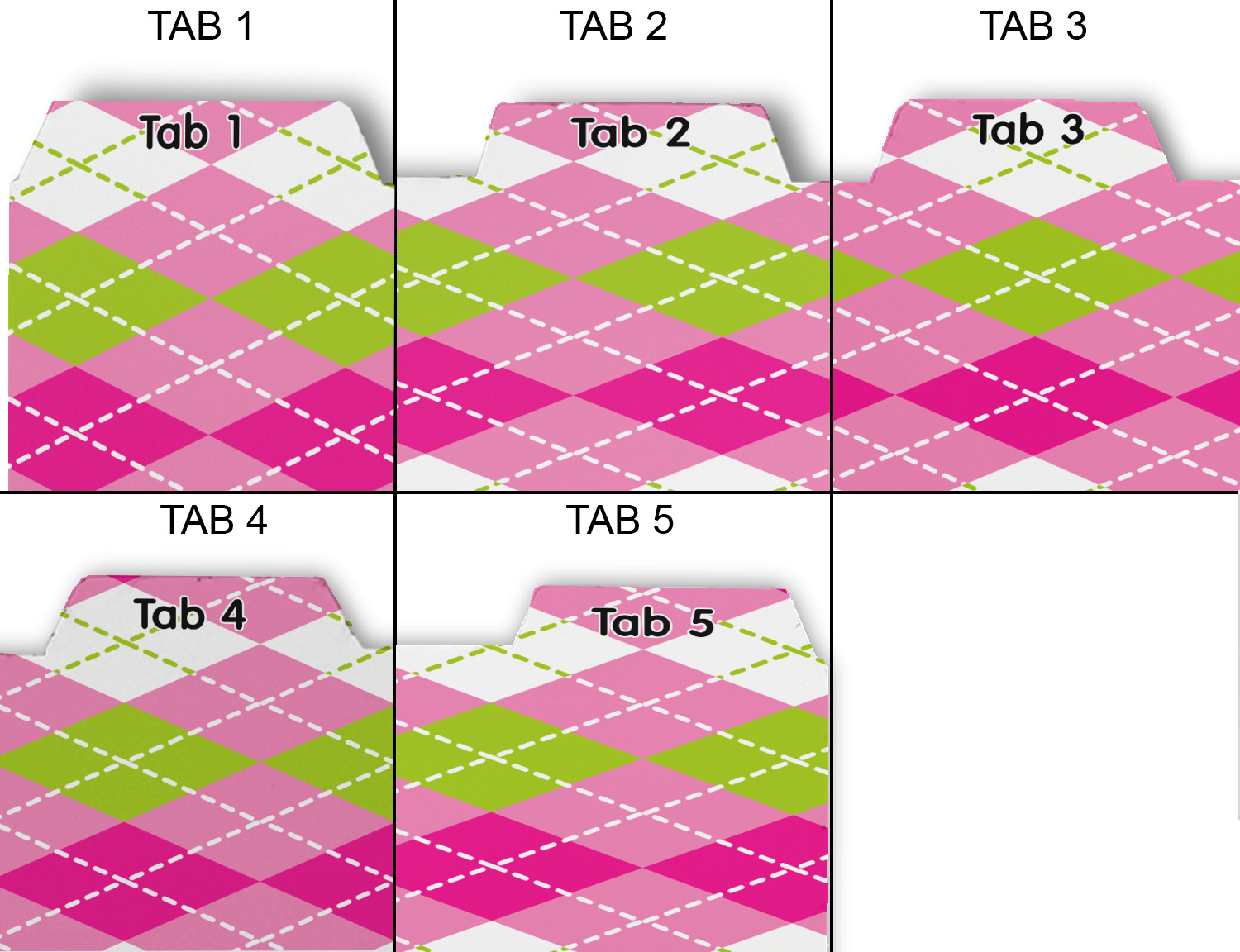 Whether you use binders at school or at work, we have designs to suit all of them. Available in 5 or 6 tab sets, you are sure to find a set to suit your needs. The back of each one is white and can be used to take notes, write vital information on, etc.