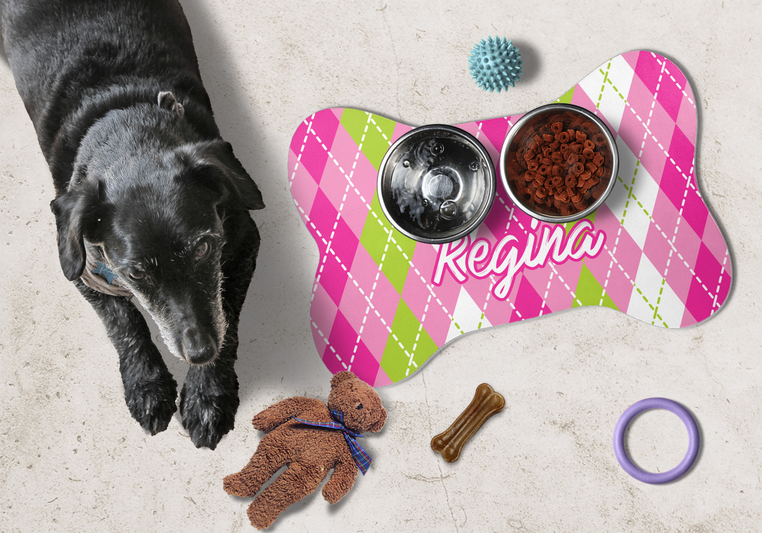 If you are purchasing a pet food mat, consider a customized dog bowl, dog collar, a bone-shaped dog tag, or any other pet supplies to match! Check out our Pet Accessories category for even more options! Craft a design that you want to extend to your eating area? Try our Home and Garden category for kitchen decor options!