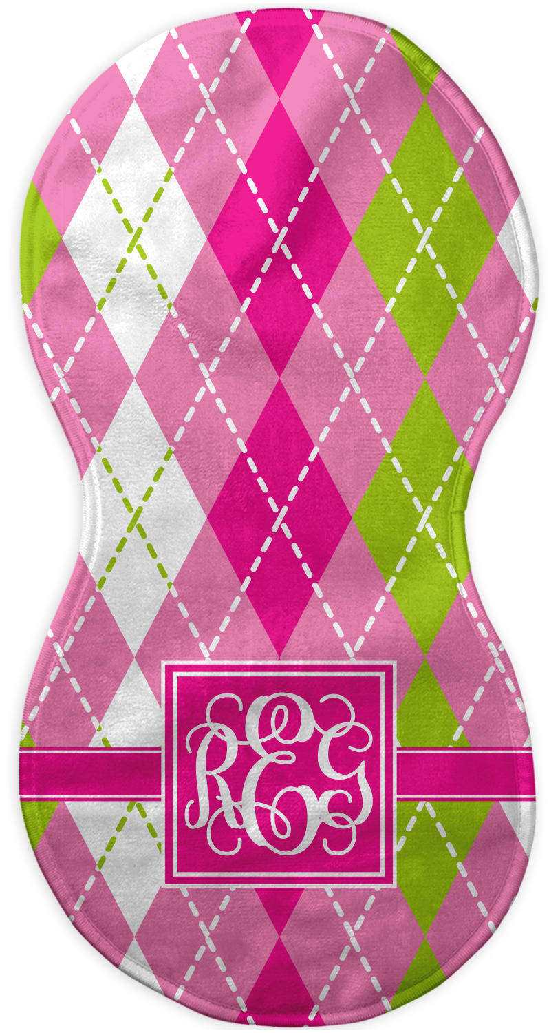 Looking for a preppy, yet still girly girl design? This pink and green argyle print with a square label and an interlocking monogram is as girly as it gets. We have created this argyle pattern in lime green, orchid pink and hot pink. For all of us girly girls and preppies and princesses, this design is a favorite!