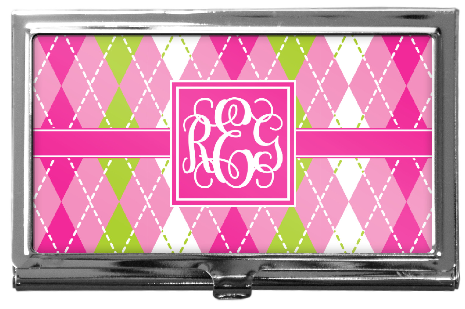 Looking for a preppy, yet still girly girl design? This pink and green argyle print with a square label and an interlocking monogram is as girly as it gets. We have created this argyle pattern in lime green, orchid pink and hot pink. For all of us girly girls and preppies and princesses, this design is a favorite!