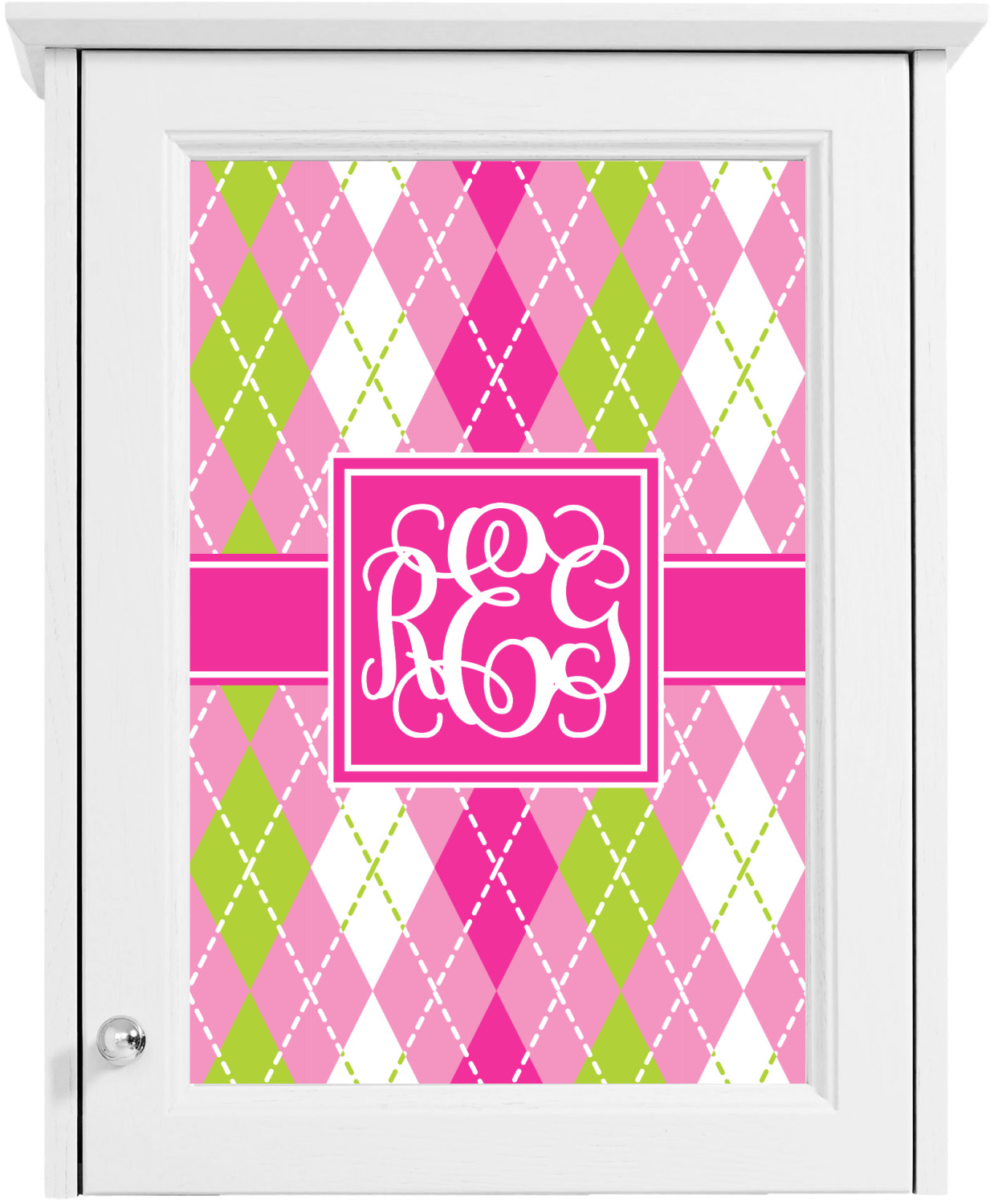 Looking for a preppy, yet still girly girl design? This pink and green argyle print with a square label and an interlocking monogram is as girly as it gets. We have created this argyle pattern in lime green, orchid pink and hot pink. For all of us girly girls and preppies and princesses, this design is a favorite!