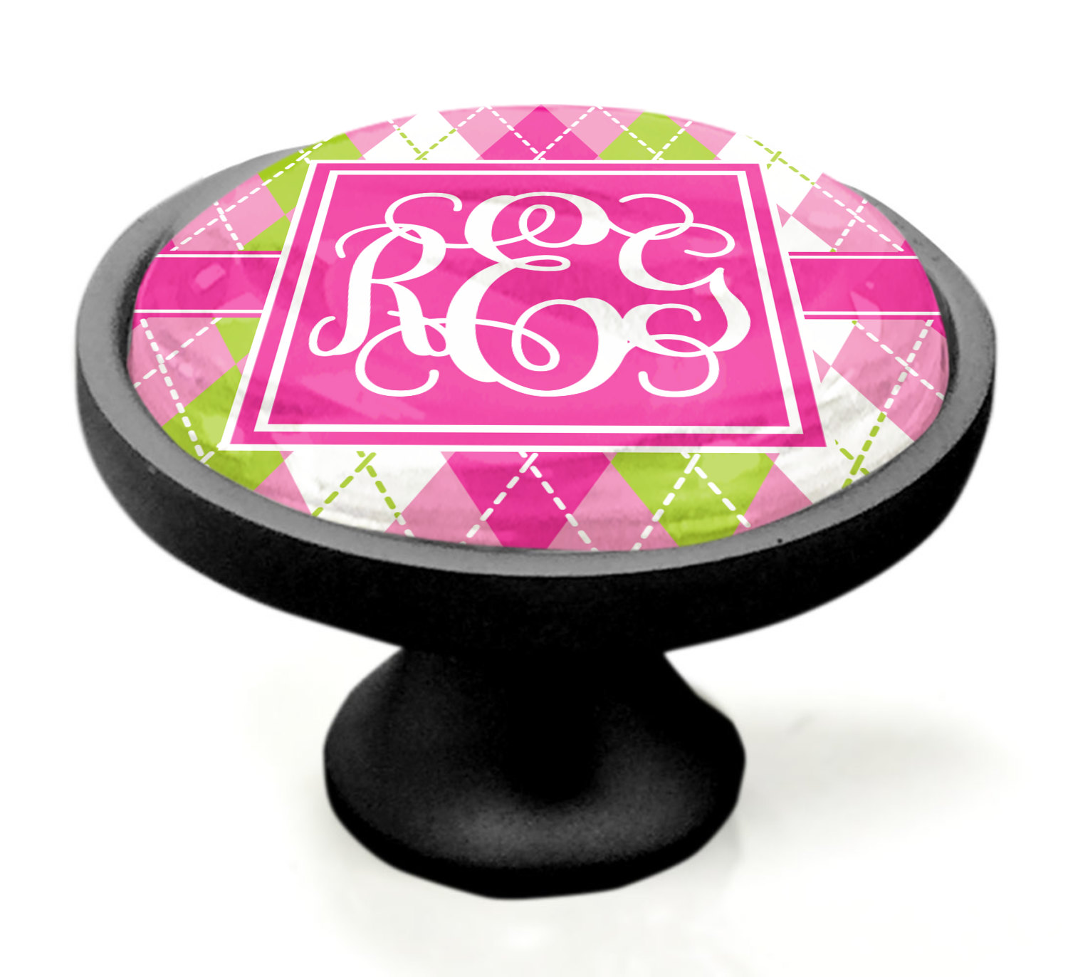 Looking for a preppy, yet still girly girl design? This pink and green argyle print with a square label and an interlocking monogram is as girly as it gets. We have created this argyle pattern in lime green, orchid pink and hot pink. For all of us girly girls and preppies and princesses, this design is a favorite!