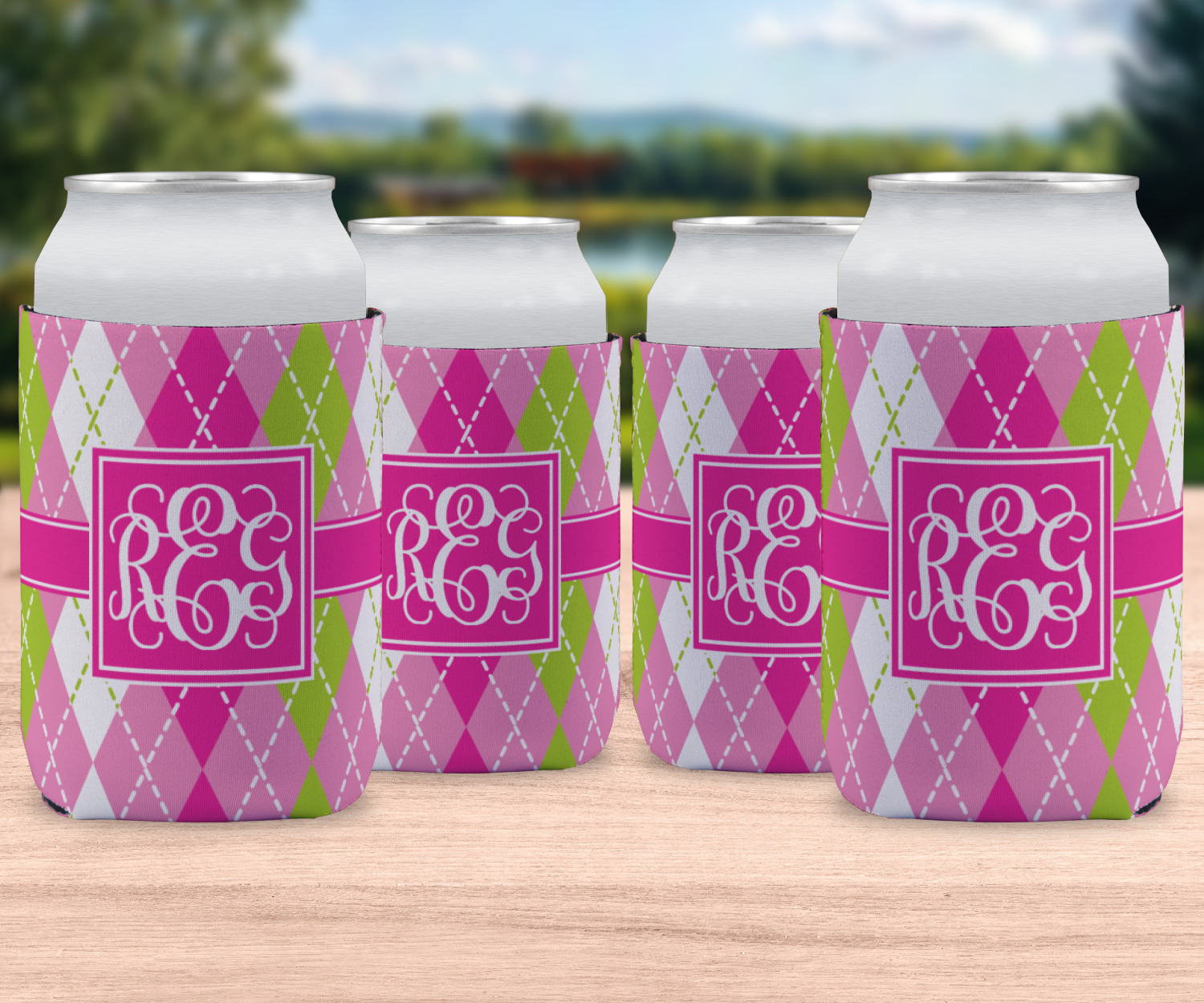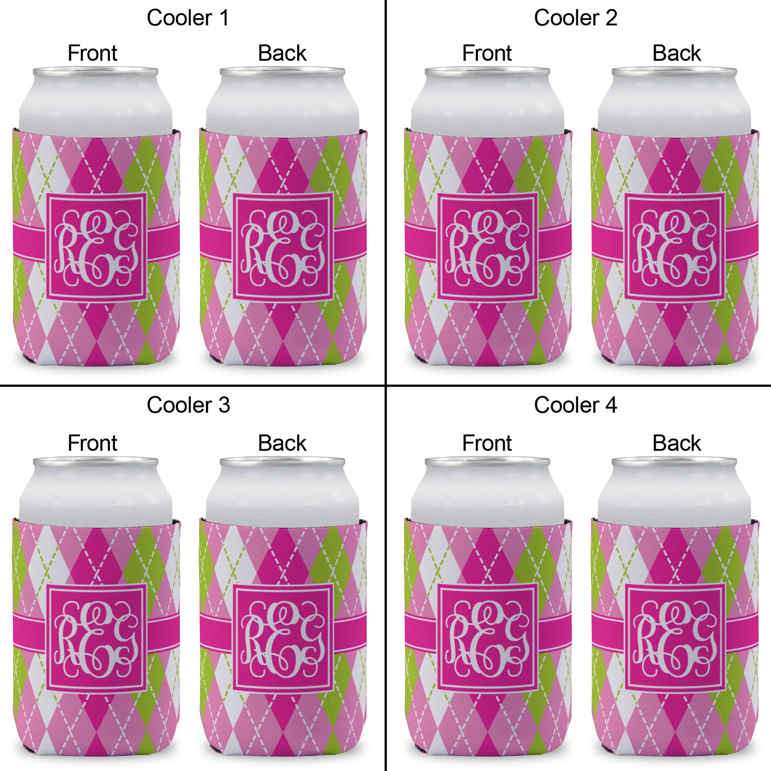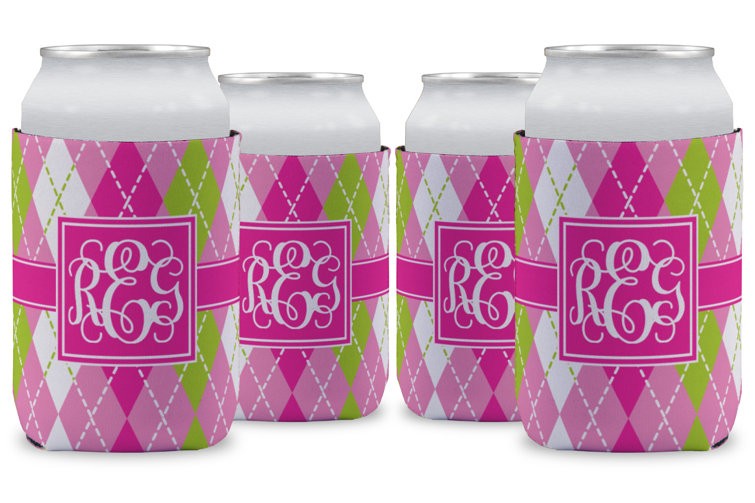 Looking for a preppy, yet still girly girl design? This pink and green argyle print with a square label and an interlocking monogram is as girly as it gets. We have created this argyle pattern in lime green, orchid pink and hot pink. For all of us girly girls and preppies and princesses, this design is a favorite!