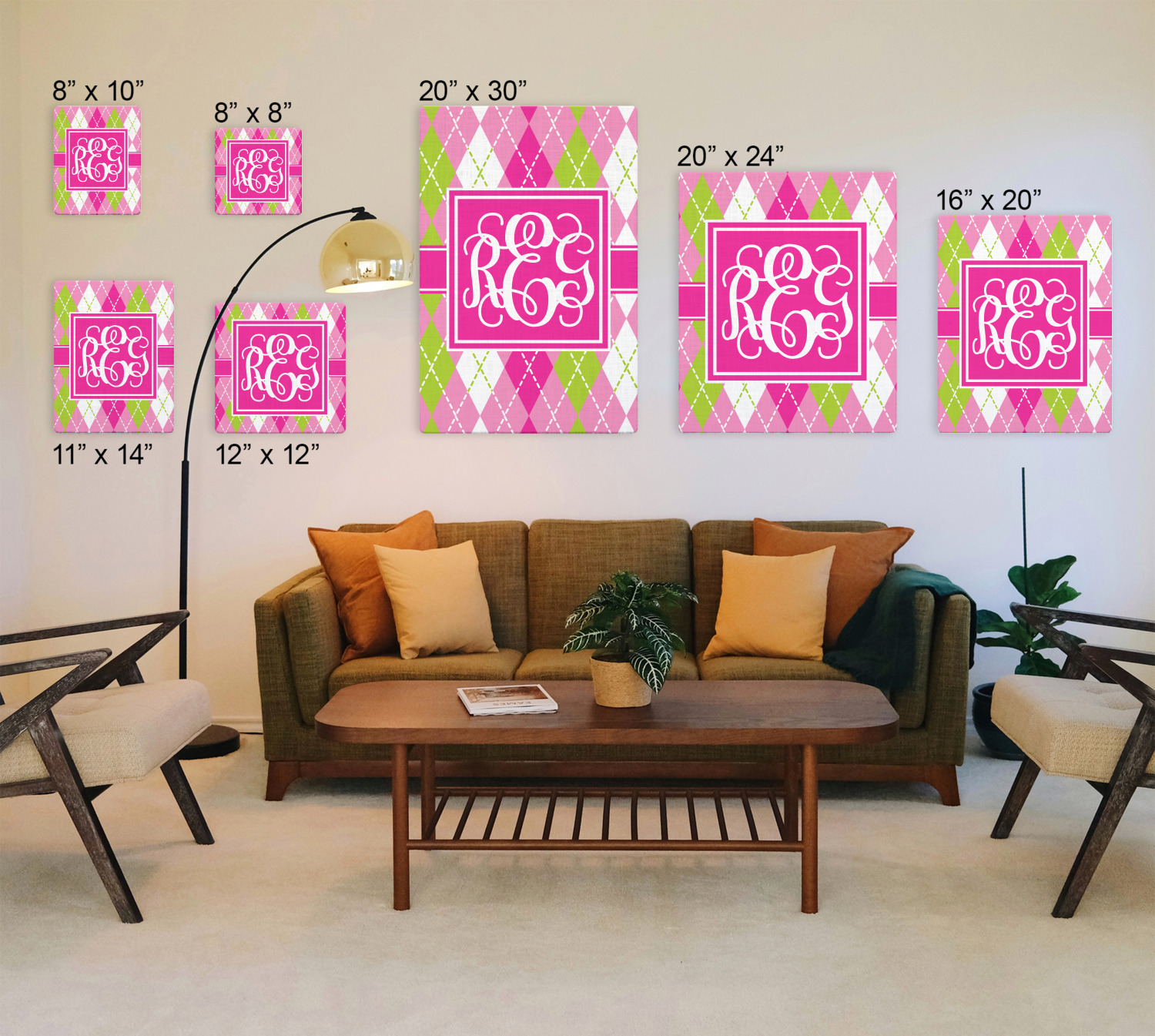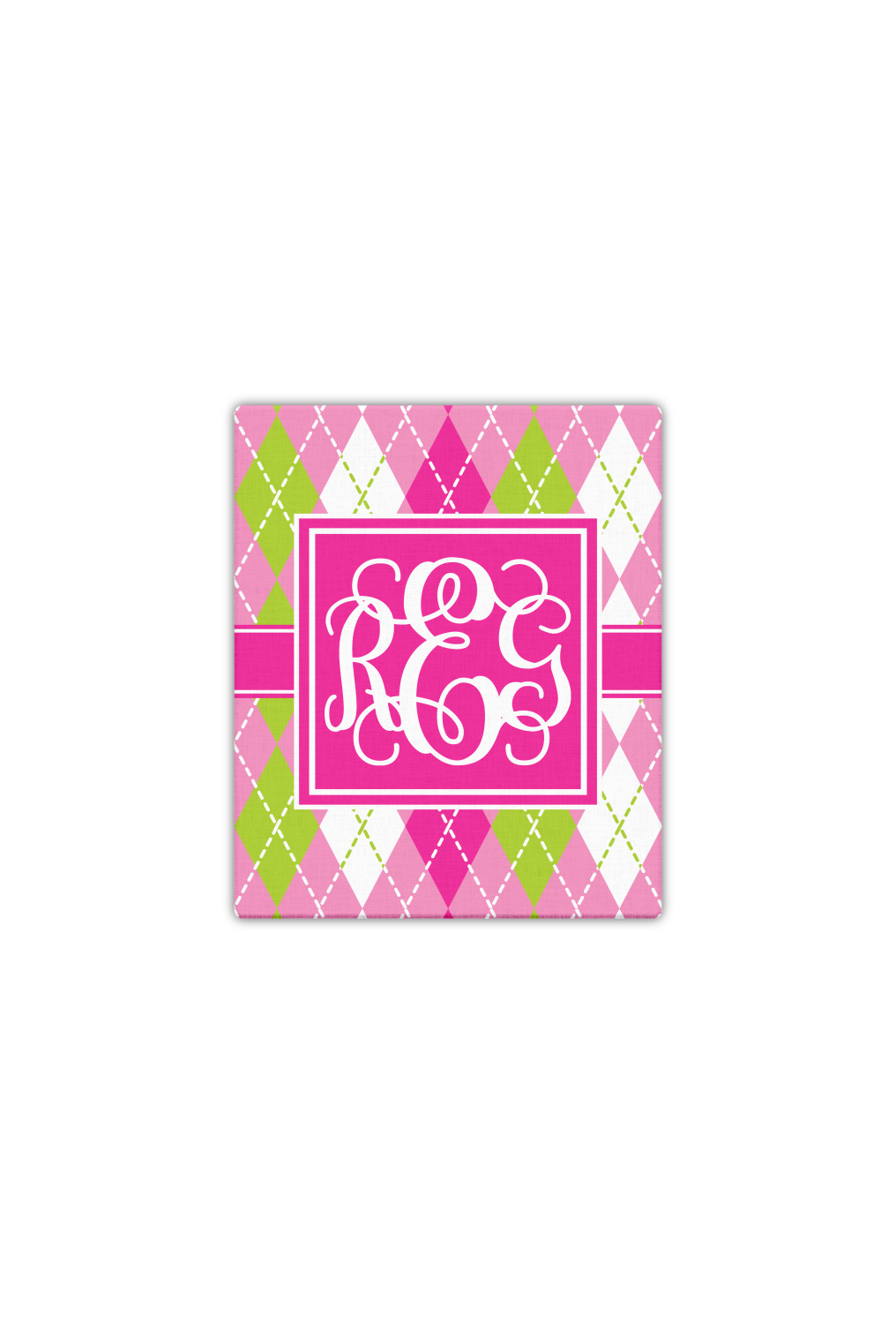 Looking for a preppy, yet still girly girl design? This pink and green argyle print with a square label and an interlocking monogram is as girly as it gets. We have created this argyle pattern in lime green, orchid pink and hot pink. For all of us girly girls and preppies and princesses, this design is a favorite!