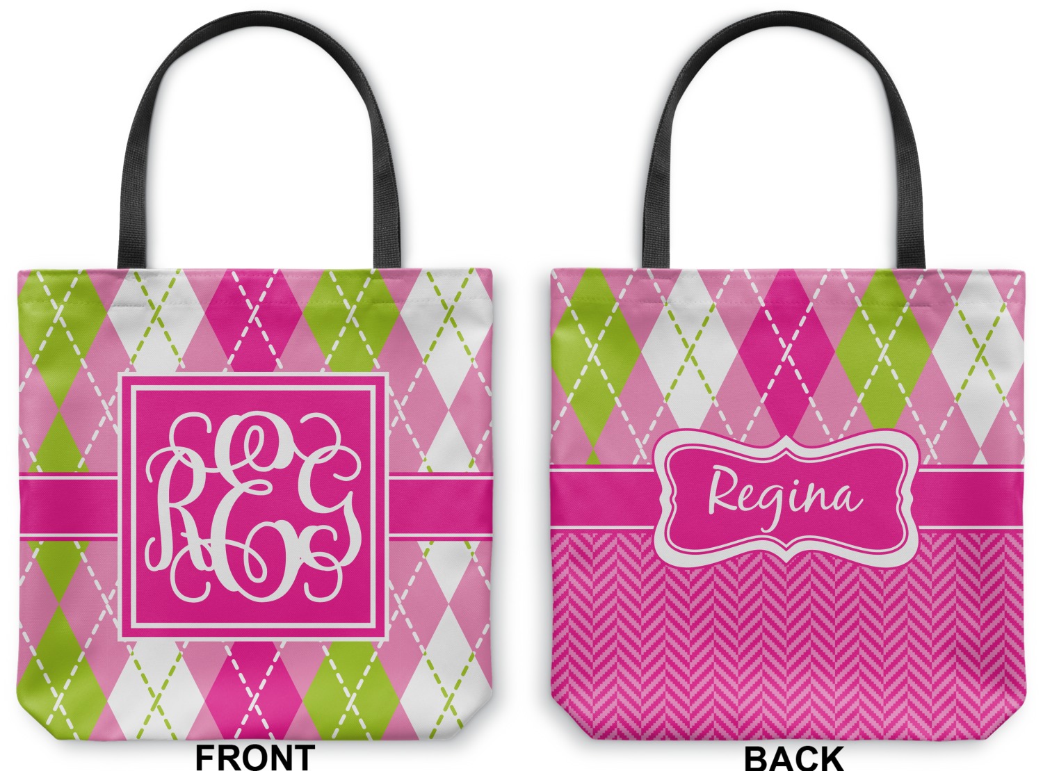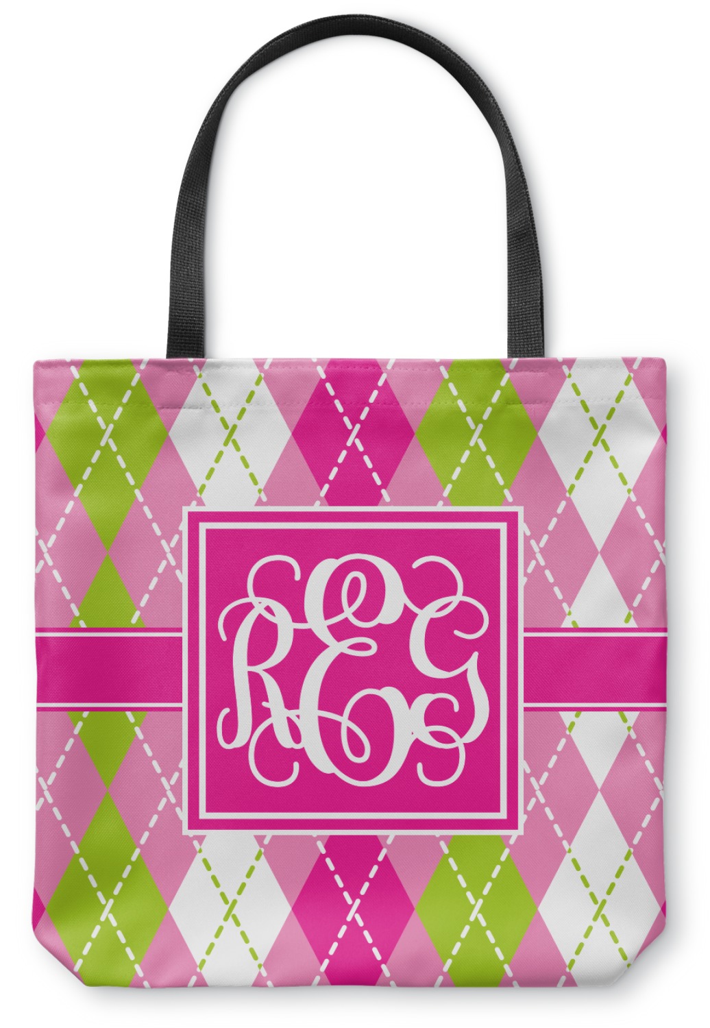 Looking for a preppy, yet still girly girl design? This pink and green argyle print with a square label and an interlocking monogram is as girly as it gets. We have created this argyle pattern in lime green, orchid pink and hot pink. For all of us girly girls and preppies and princesses, this design is a favorite!