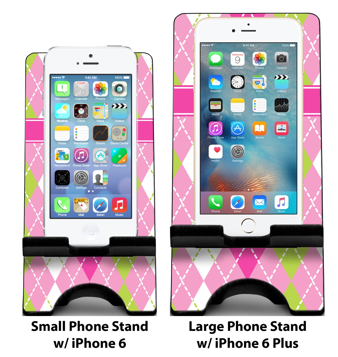 To meet your needs, we offer four variations of this IPhone stand. The backboard of the first version is shaped as a plain, yet sleek rectangle, and is available in two sizes. Our smaller size is approximately 4 by 3.25 by 7 inches, while the larger model is 4 by 3.77 by 8.5 inches. Alongside this model, we also provide you with a more decorative option. The upper part of our second version features a curved edge, for a classy, suave appearance. This phone holder is also sold in two sizes: a smaller version, which is 4 by 3.25 by 7 inches, and our larger model, which is 4 by 3.77 by 8.5 inches. Both models will support large phones, but the larger model is better if you wish to proudly display your personalized design.